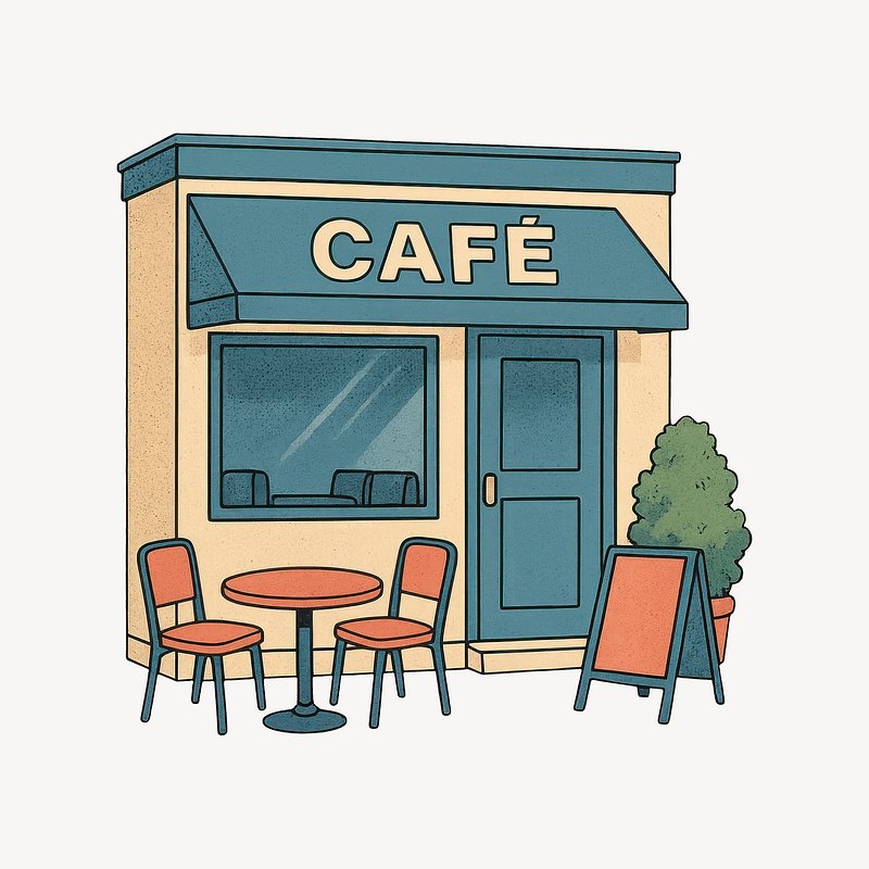 Charming café exterior illustration. https://www.rawpixel.com/image/24715089/charming-cafe-exterior-illustrationView license