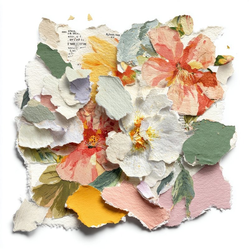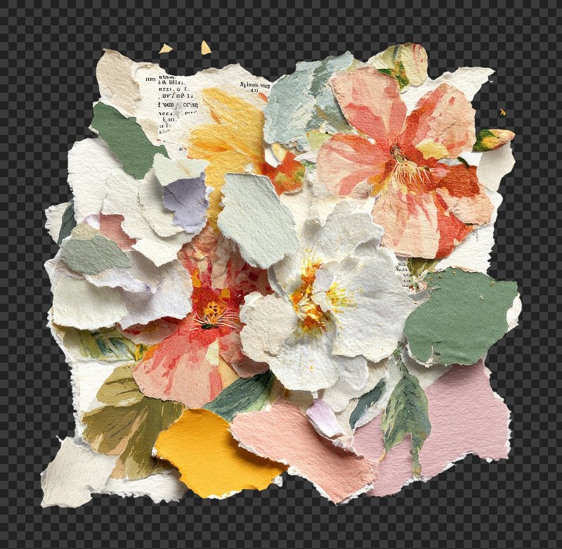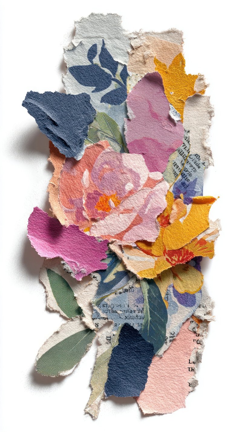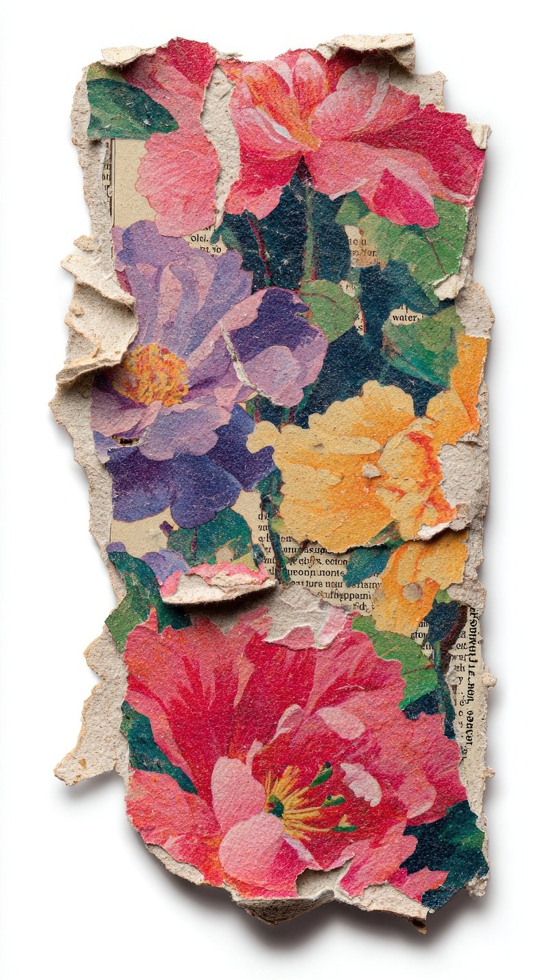 Vibrant torn paper floral collage. https://www.rawpixel.com/image/25588071/vibrant-torn-paper-floral-collageView license