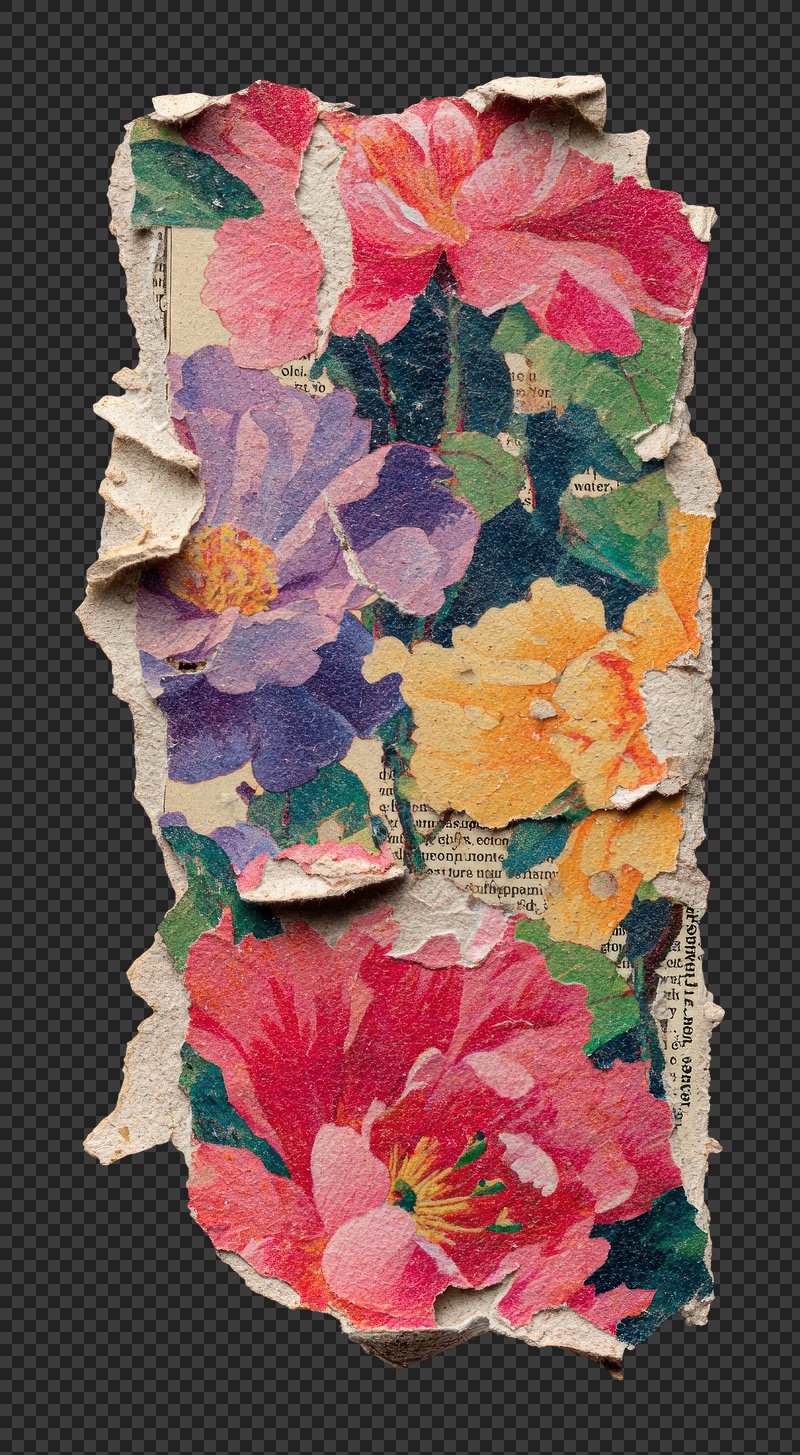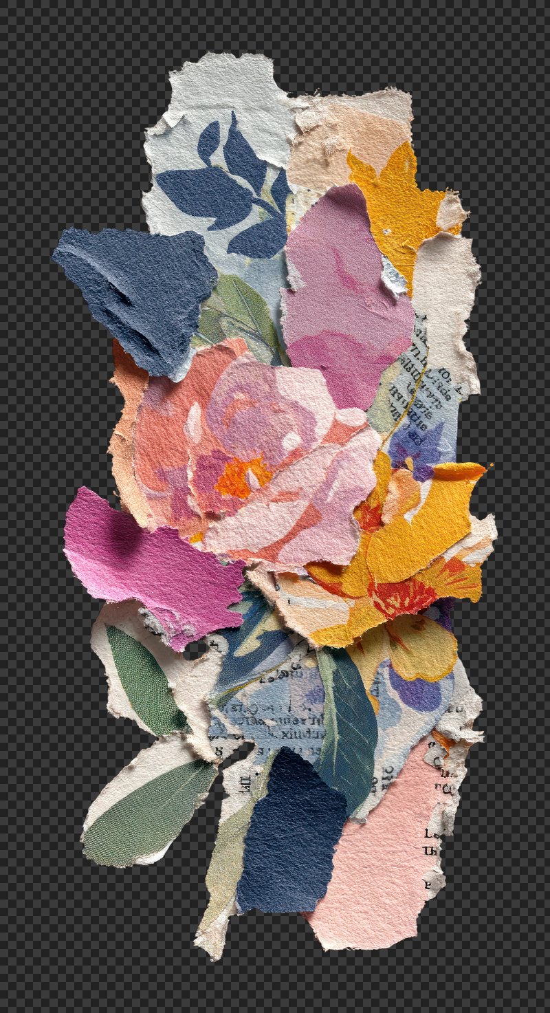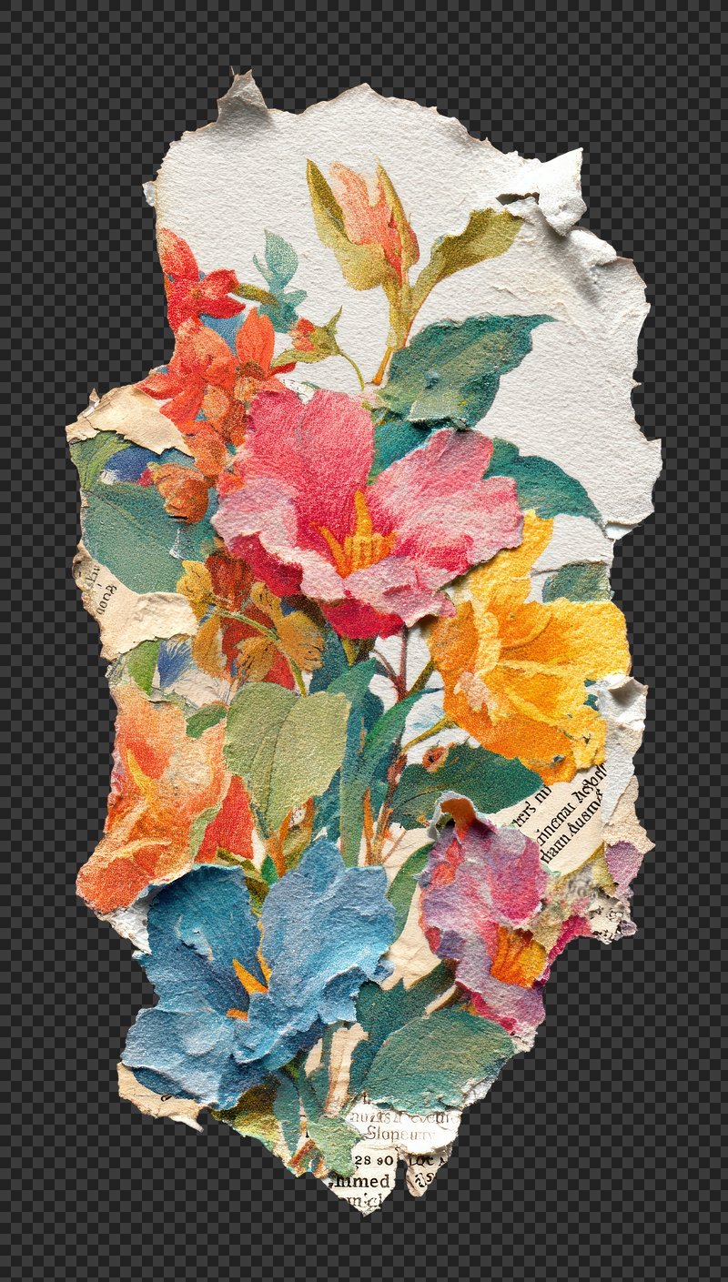 Colorful torn paper floral collage. https://www.rawpixel.com/image/25588070/colorful-torn-paper-floral-collageView license