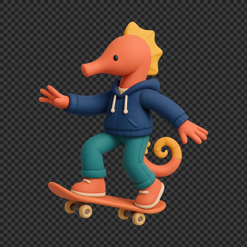 PNG Seahorse skateboarding cartoon illustration. https://www.rawpixel.com/image/24072948/png-seahorse-skateboarding-cartoon-illustrationView license