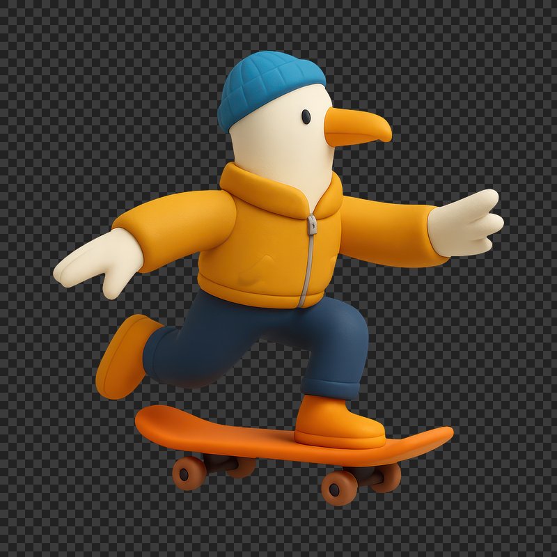 PNG Duck skateboarding vibrant fun https://www.rawpixel.com/image/24068339/png-duck-skateboarding-vibrant-funView license