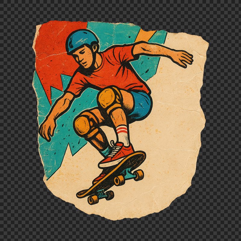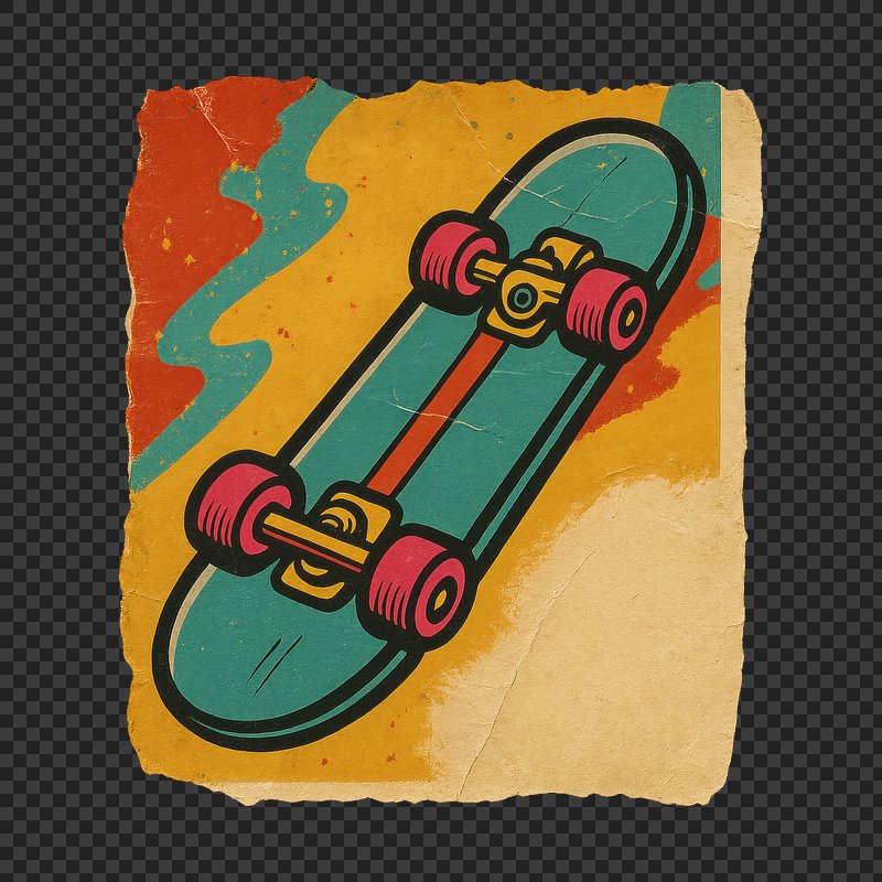 PNG Retro skateboard pop art illustration. https://www.rawpixel.com/image/24401227/png-retro-skateboard-pop-art-illustrationView license