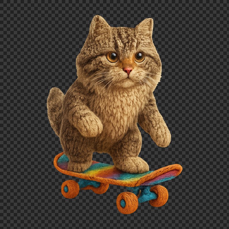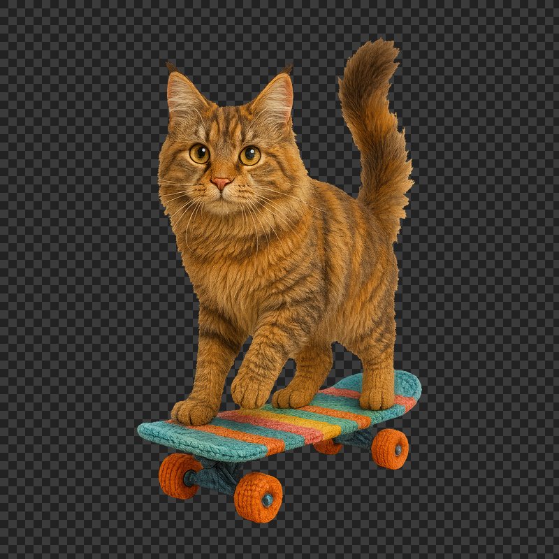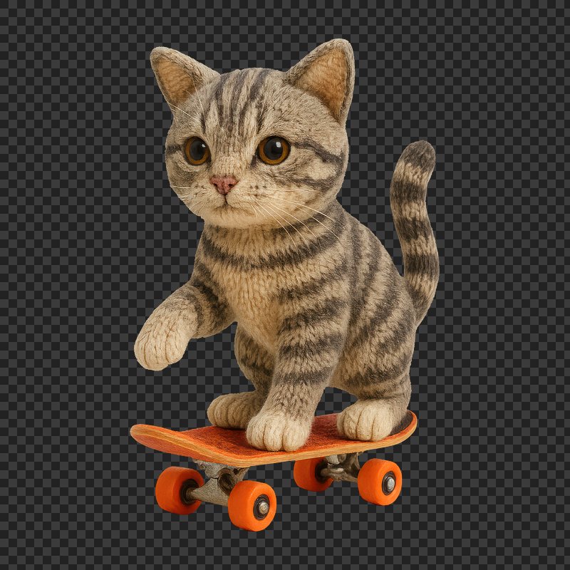 PNG Knitted cat skateboarding toy. https://www.rawpixel.com/image/24522678/png-knitted-cat-skateboarding-toyView license