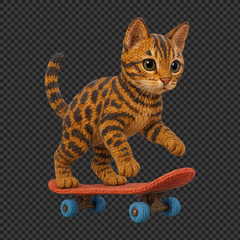 Knitted cat skateboarding fun. https://www.rawpixel.com/image/24608798/knitted-cat-skateboarding-funView license