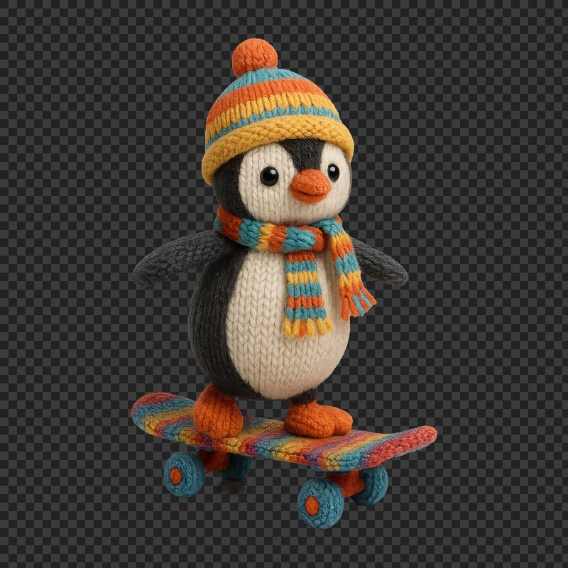 PNG Knitted penguin skateboarding joyfully. https://www.rawpixel.com/image/24478920/png-knitted-penguin-skateboarding-joyfullyView license
