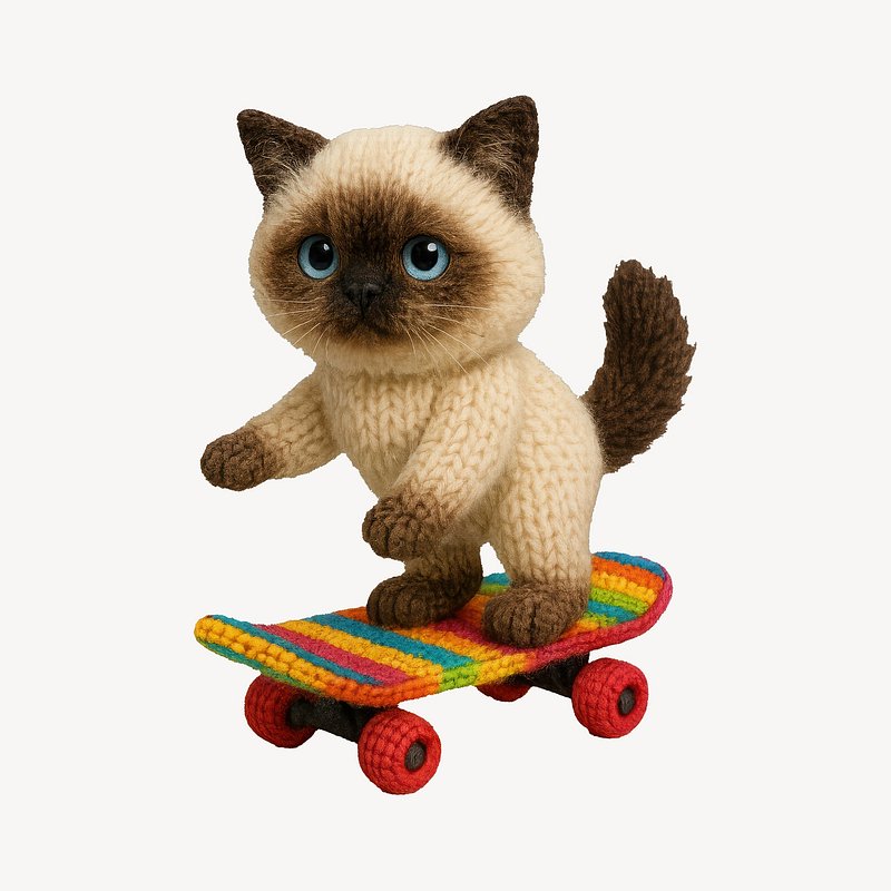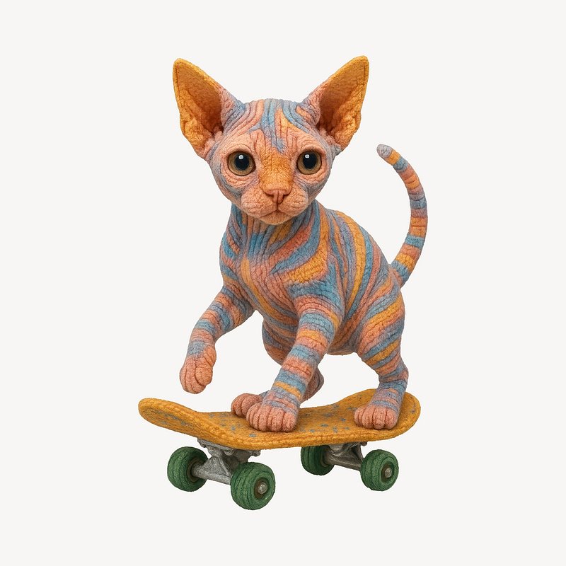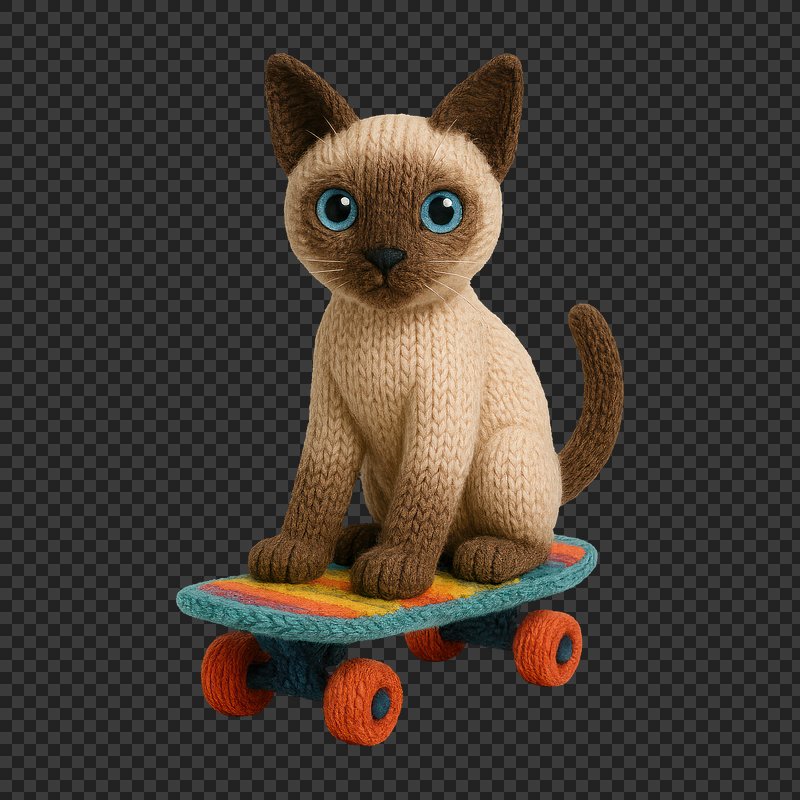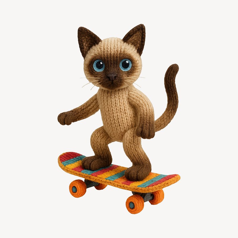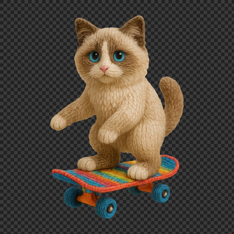 Knitted cat skateboarding fun https://www.rawpixel.com/image/24605335/knitted-cat-skateboarding-funView license