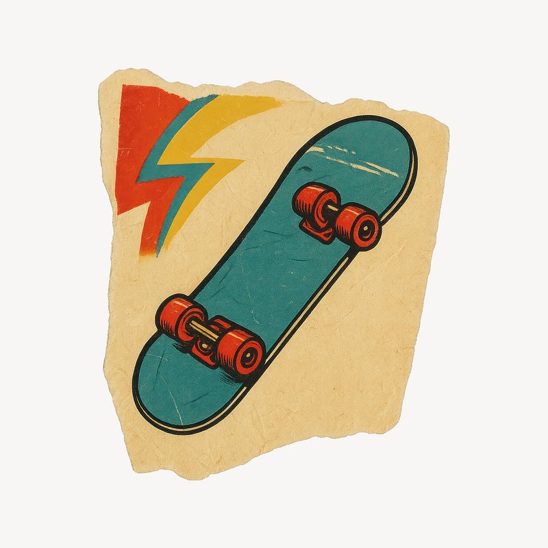 Retro skateboard illustration with lightning. https://www.rawpixel.com/image/24573136/retro-skateboard-illustration-with-lightningView license
