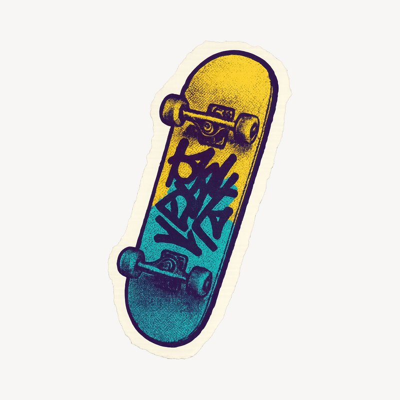 PNG skater sticker, yellow skateboard, isolated object https://www.rawpixel.com/image/6085106/png-sticker-elementView license