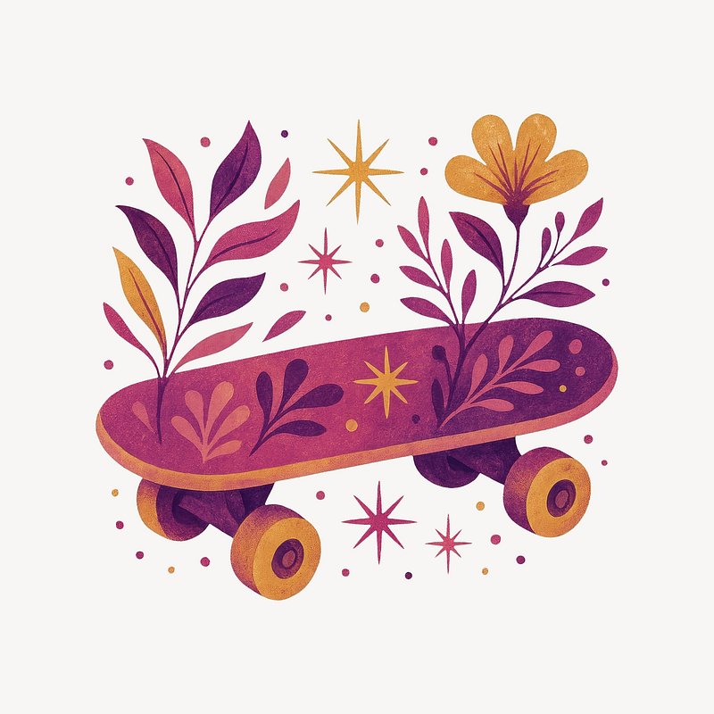 Floral skateboard with vibrant design. https://www.rawpixel.com/image/24659378/floral-skateboard-with-vibrant-designView license