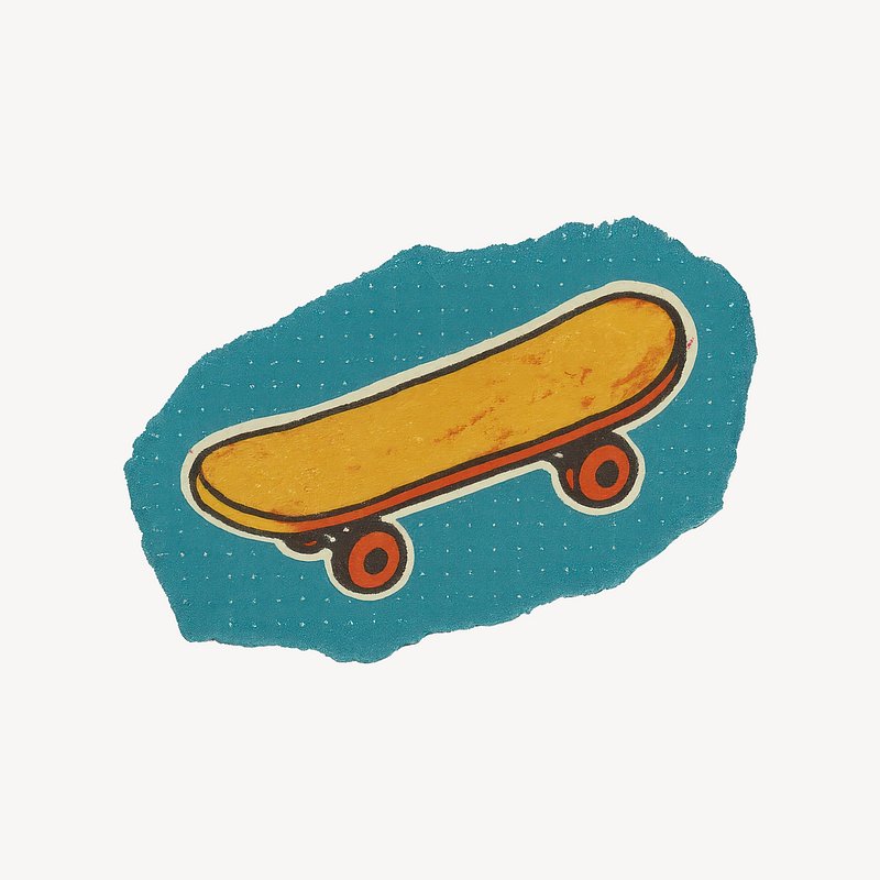 Retro skateboard illustration art. https://www.rawpixel.com/image/24491818/retro-skateboard-illustration-artView license