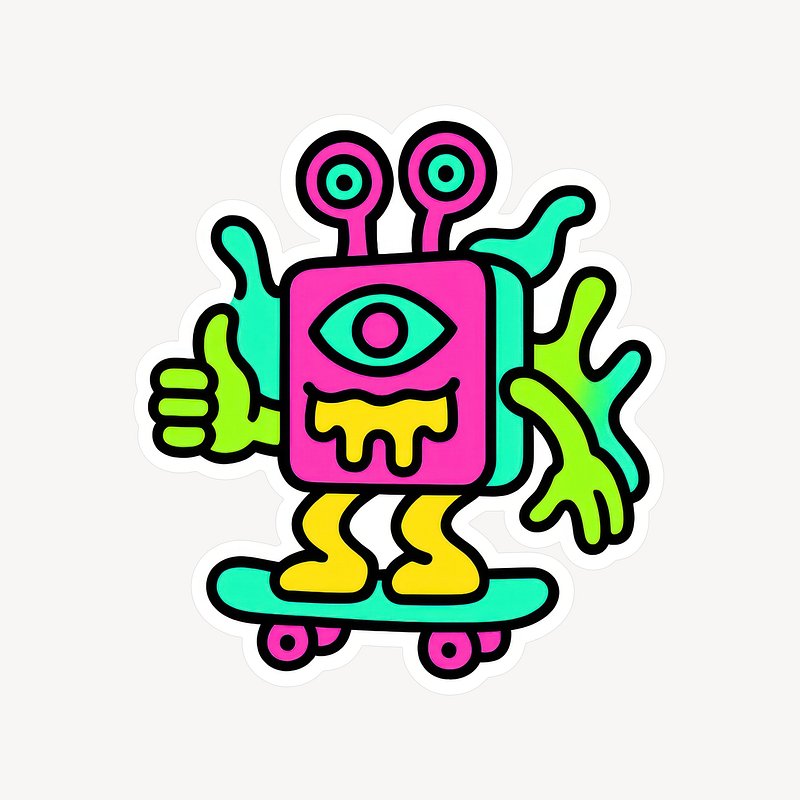 Colorful alien skateboarding illustration. https://www.rawpixel.com/image/24077469/colorful-alien-skateboarding-illustrationView license