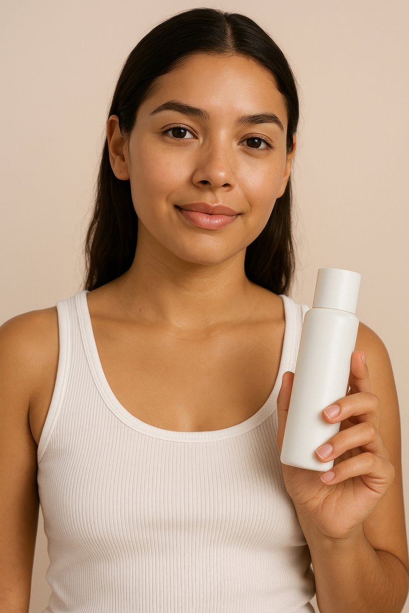 Woman holding skincare product bottle. https://www.rawpixel.com/image/24553473/woman-holding-skincare-product-bottleView license