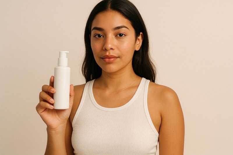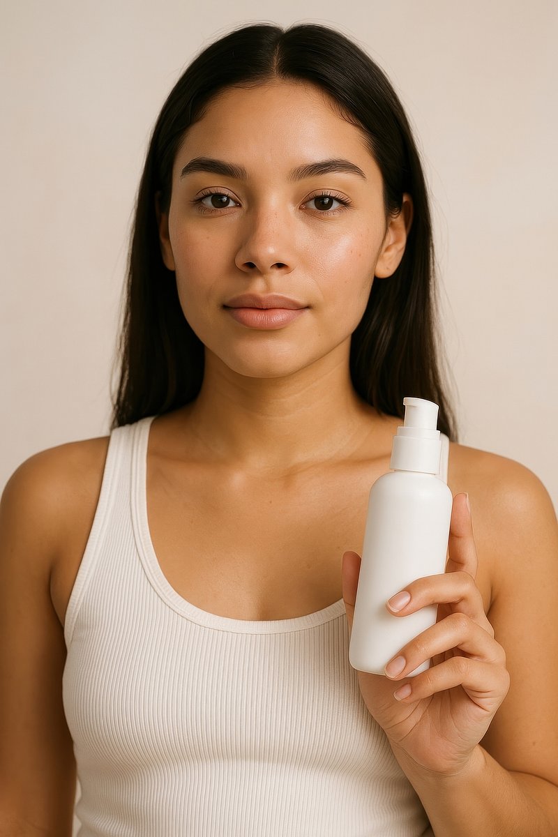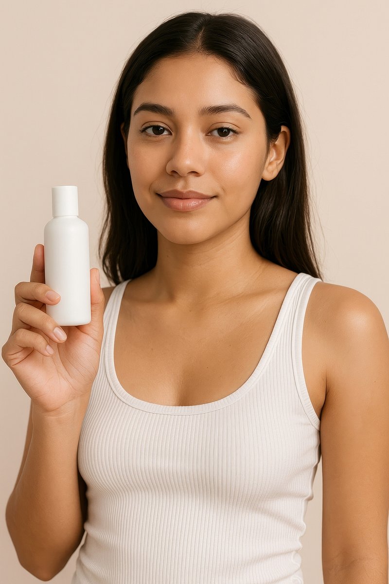 Woman holding skincare product bottle. https://www.rawpixel.com/image/24559390/woman-holding-skincare-product-bottleView license