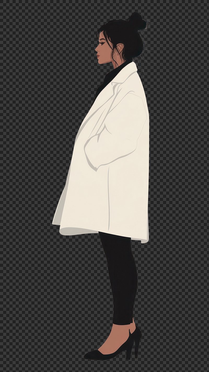 PNG A woman in an oversized white coat illustration minimalist profile. https://www.rawpixel.com/image/17547434/png-woman-oversized-white-coat-illustration-minimalist-profileView license