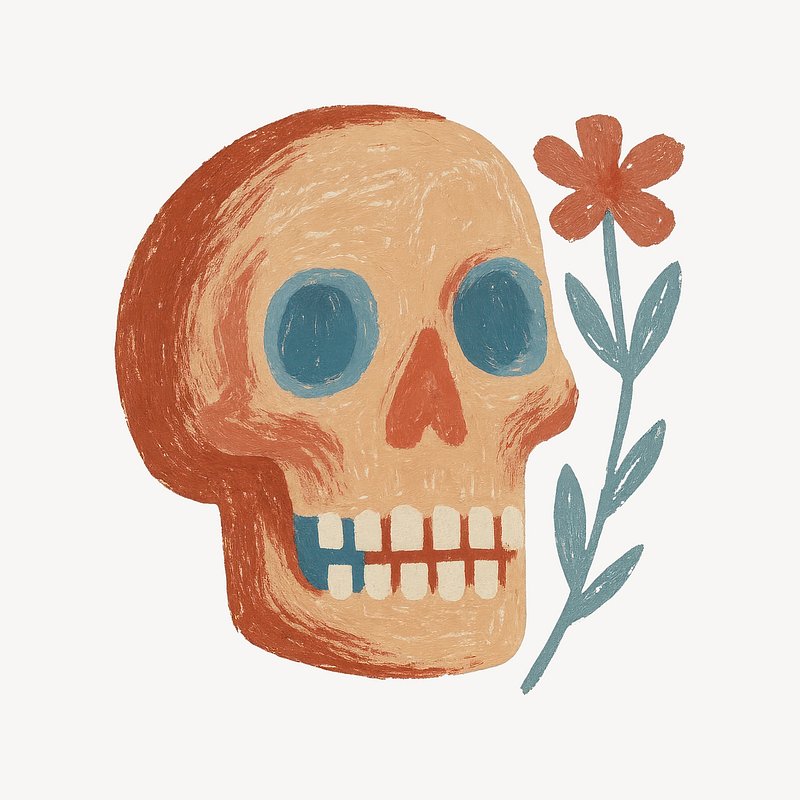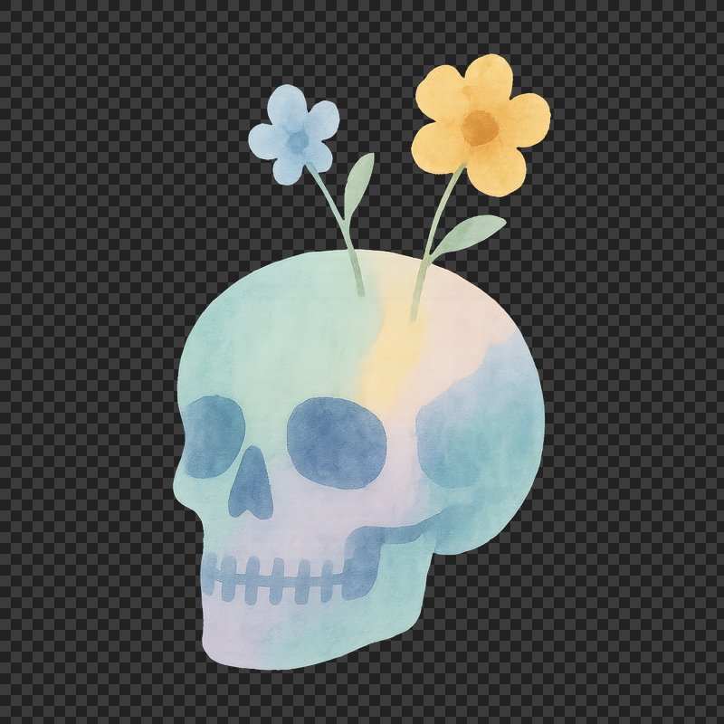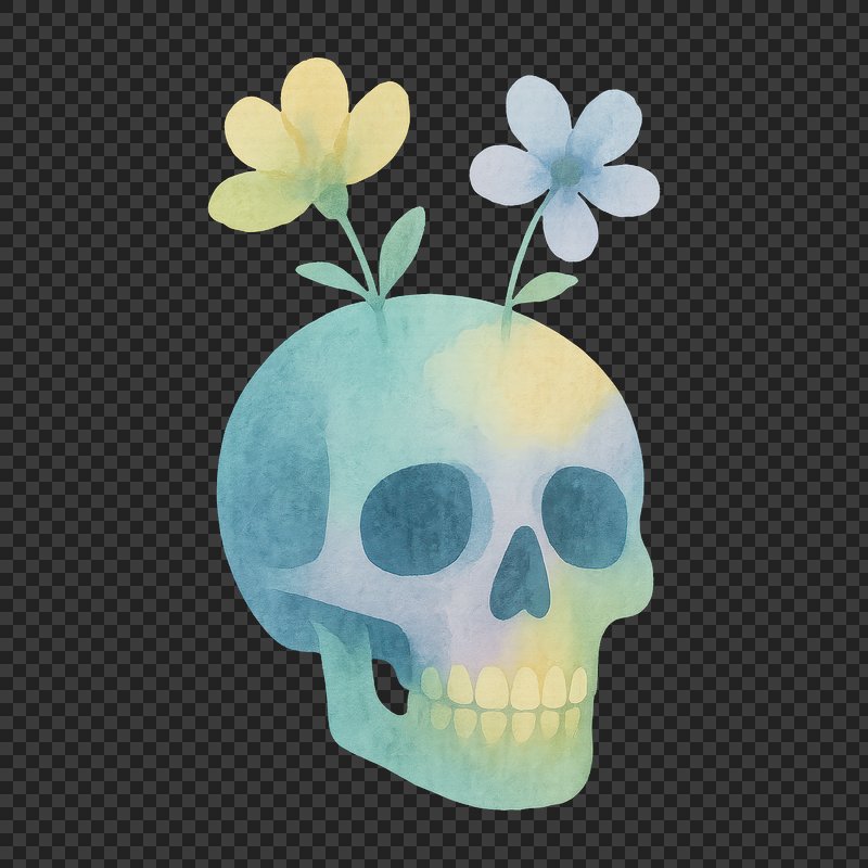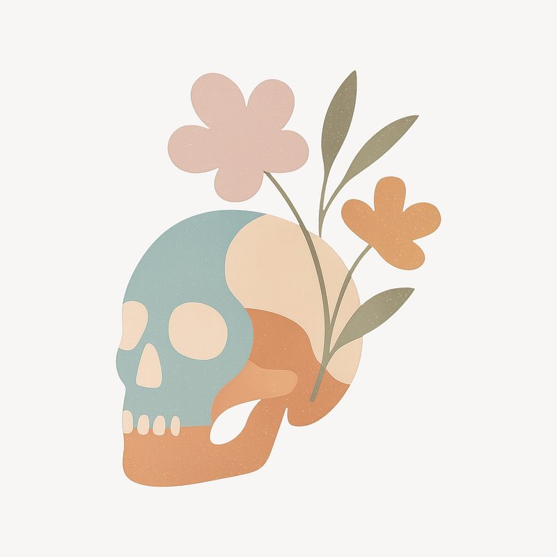 Whimsical skull with blooming flowers. https://www.rawpixel.com/image/24524832/whimsical-skull-with-blooming-flowersView license