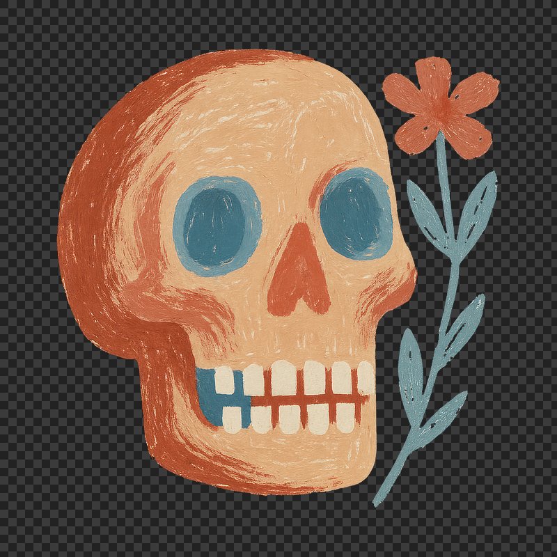 PNG Colorful skull with flower illustration. https://www.rawpixel.com/image/24795053/png-colorful-skull-with-flower-illustrationView license