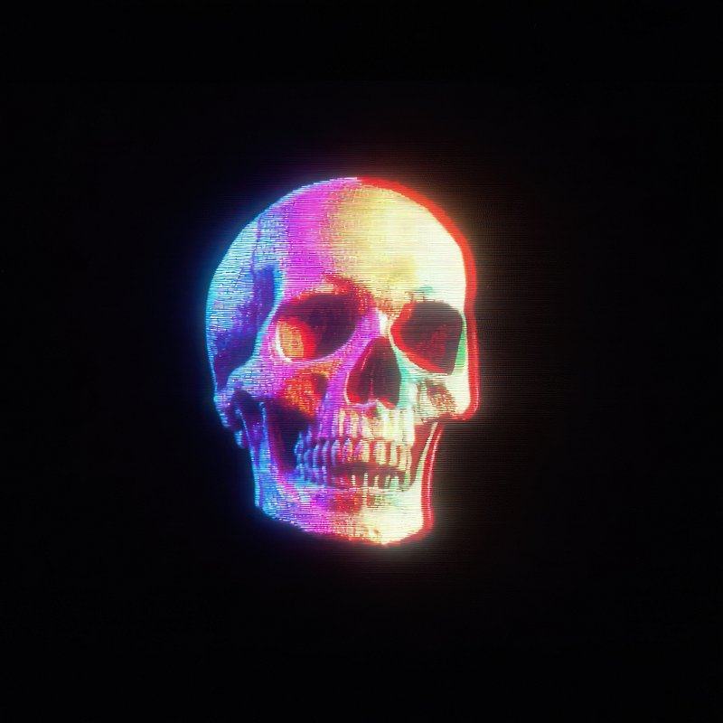 Colorful skull with glitch effect. https://www.rawpixel.com/image/24465131/colorful-skull-with-glitch-effectView license
