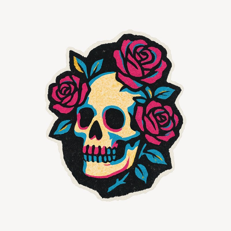 Colorful skull with roses https://www.rawpixel.com/image/24561931/colorful-skull-with-rosesView license