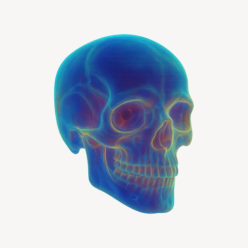 Futuristic glowing skull illustration. https://www.rawpixel.com/image/24697481/futuristic-glowing-skull-illustrationView license