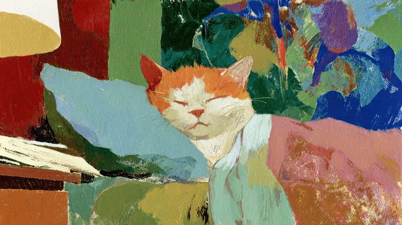 Cat sleep in bed scene painting art illustration. https://www.rawpixel.com/image/18172099/cat-sleep-bed-scene-painting-art-illustrationView license