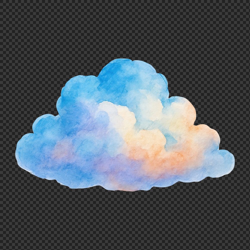 PNG Colorful watercolor cloud illustration. https://www.rawpixel.com/image/17646558/png-colorful-watercolor-cloud-illustrationView license