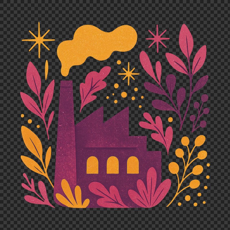 PNG Colorful factory surrounded by nature. https://www.rawpixel.com/image/24552046/png-colorful-factory-surrounded-natureView license