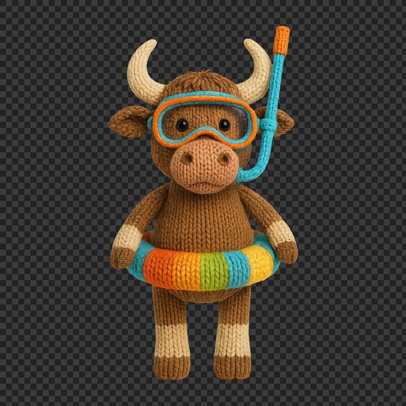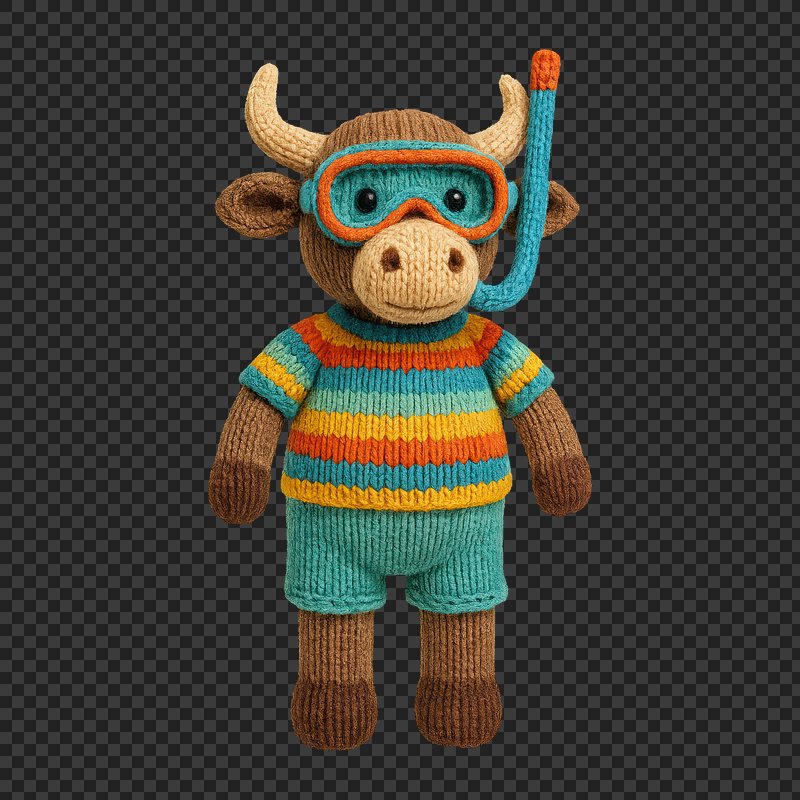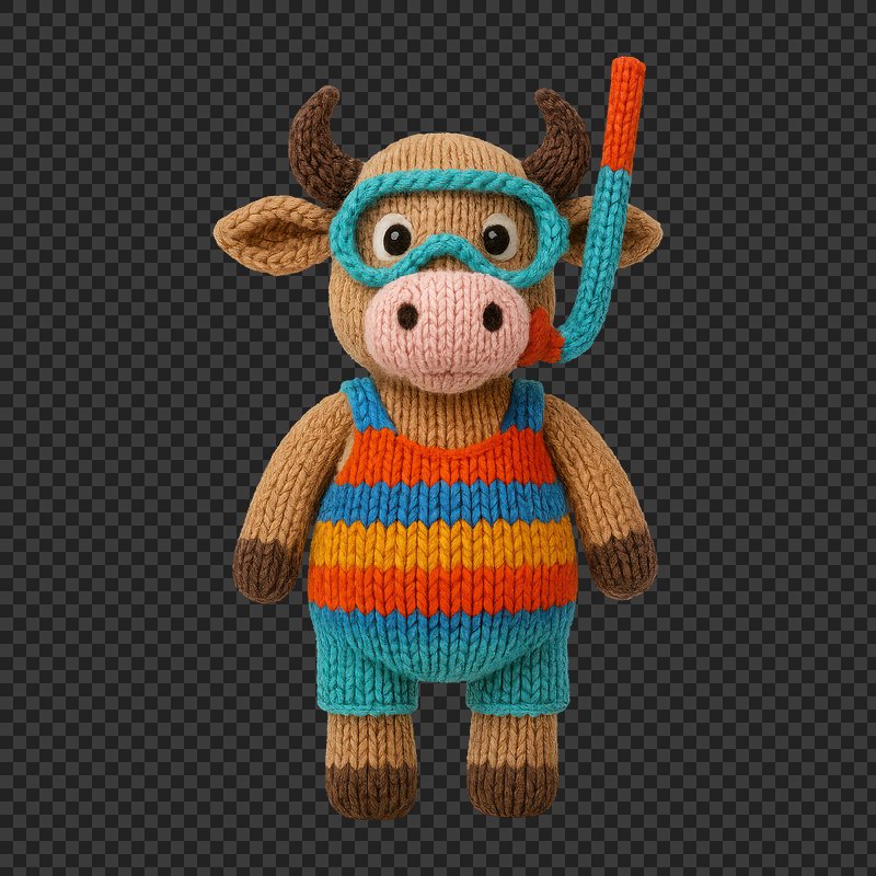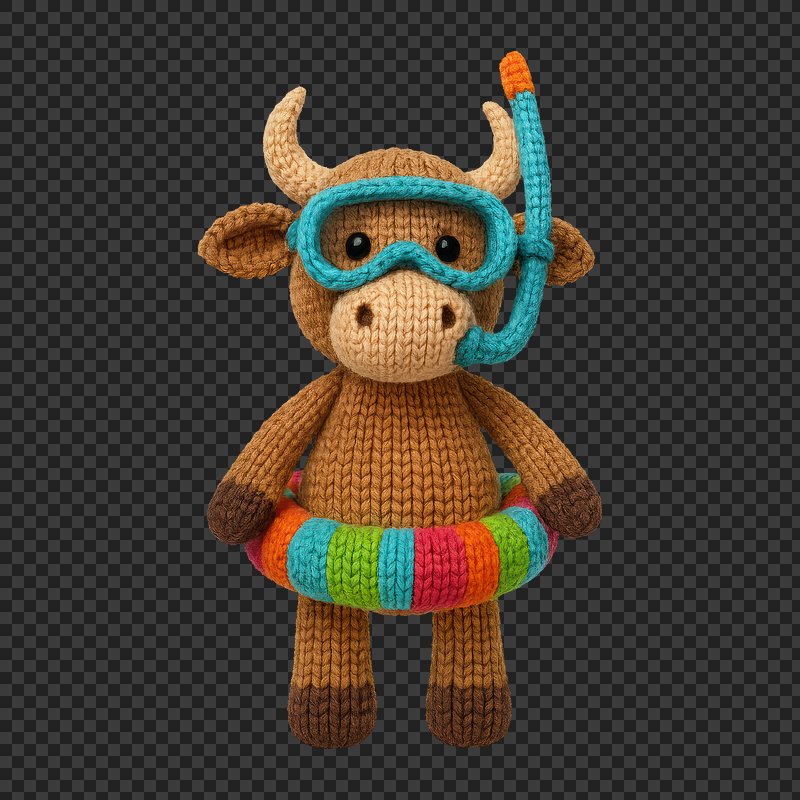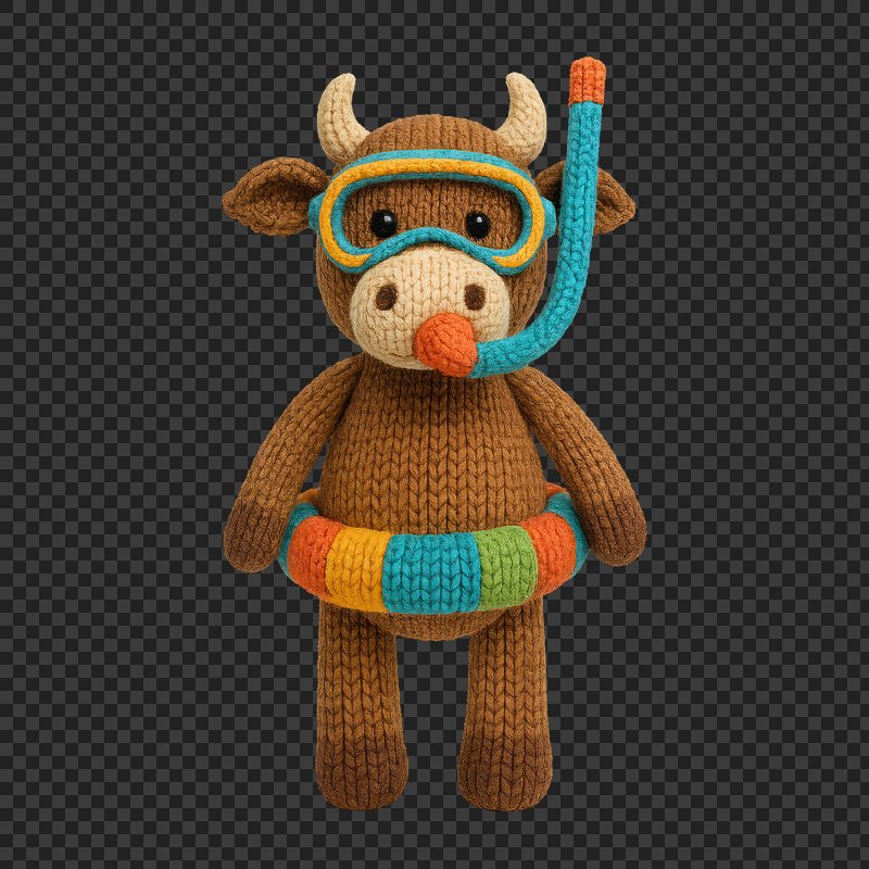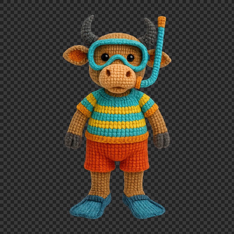 PNG Knitted bull ready for snorkeling. https://www.rawpixel.com/image/24442038/png-knitted-bull-ready-for-snorkelingView license