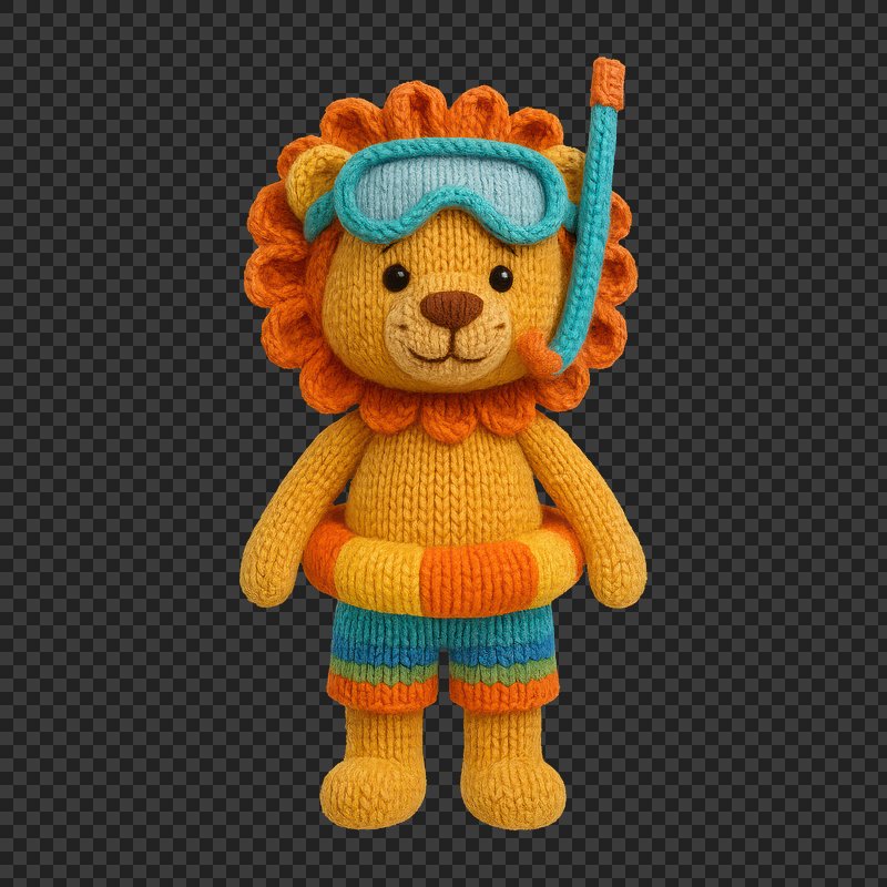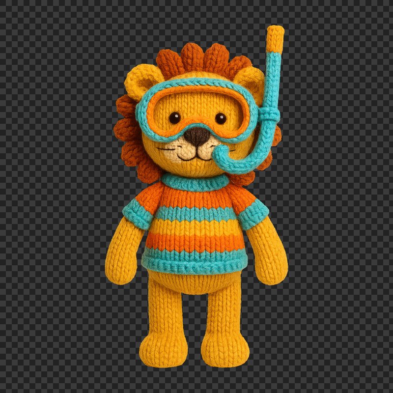 PNG Cute knitted lion snorkel illustration. https://www.rawpixel.com/image/24477843/png-cute-knitted-lion-snorkel-illustrationView license