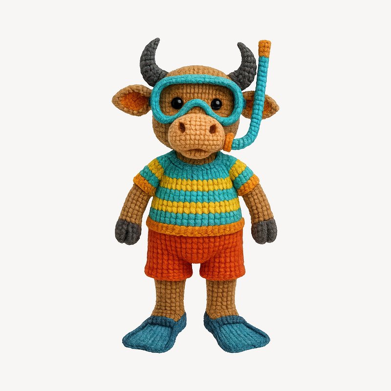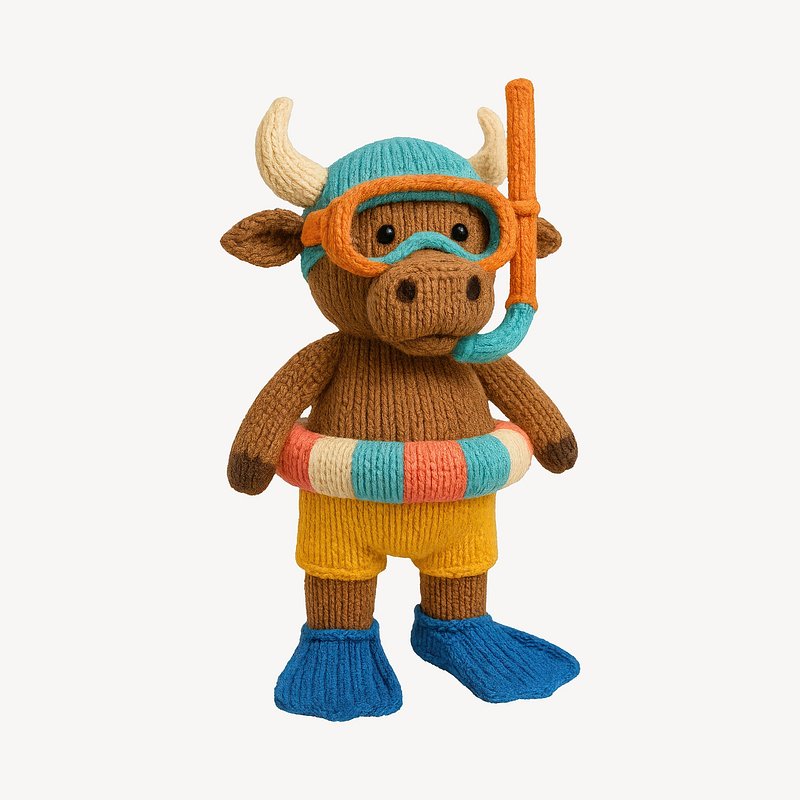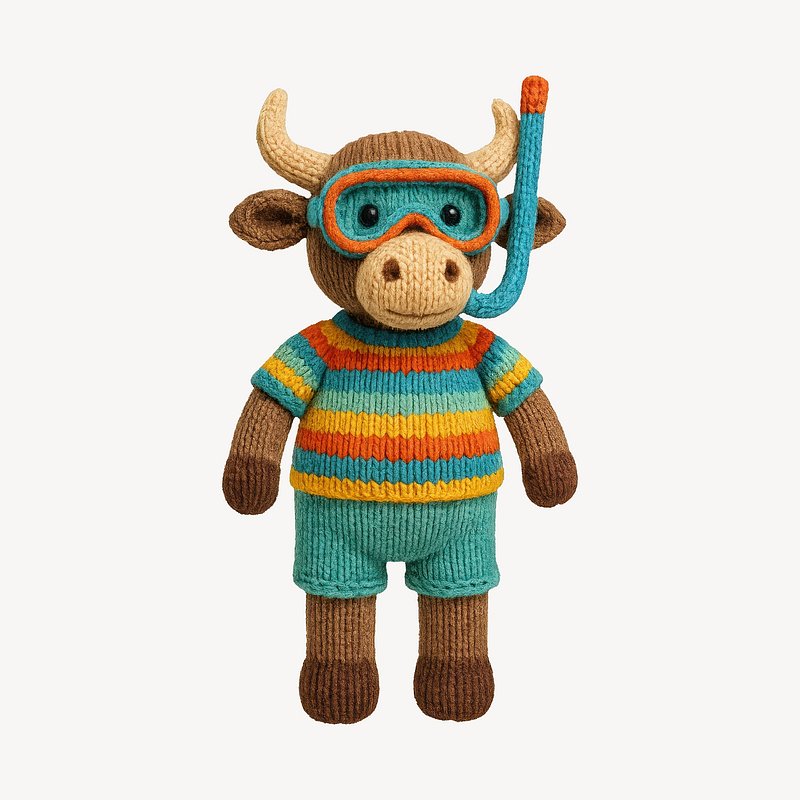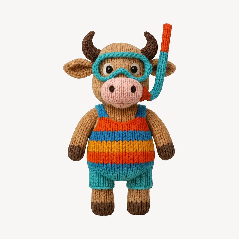 Knitted bull ready for snorkeling. https://www.rawpixel.com/image/24530666/knitted-bull-ready-for-snorkelingView license
