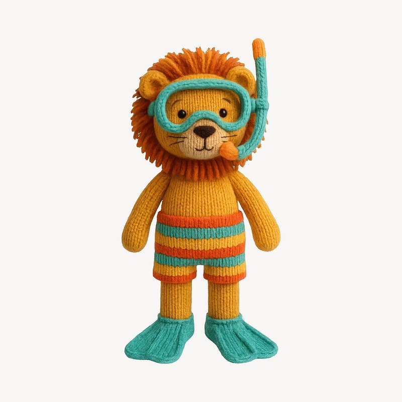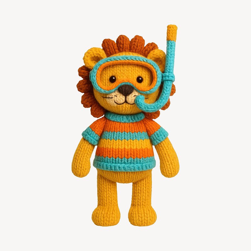 Crocheted lion wearing snorkeling gear. https://www.rawpixel.com/image/24655903/crocheted-lion-wearing-snorkeling-gearView license