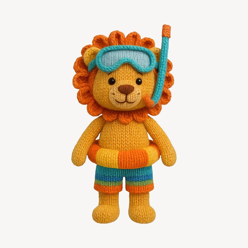 Crochet lion with snorkeling gear. https://www.rawpixel.com/image/24657751/crochet-lion-with-snorkeling-gearView license