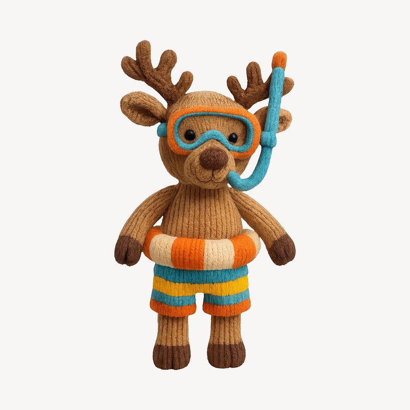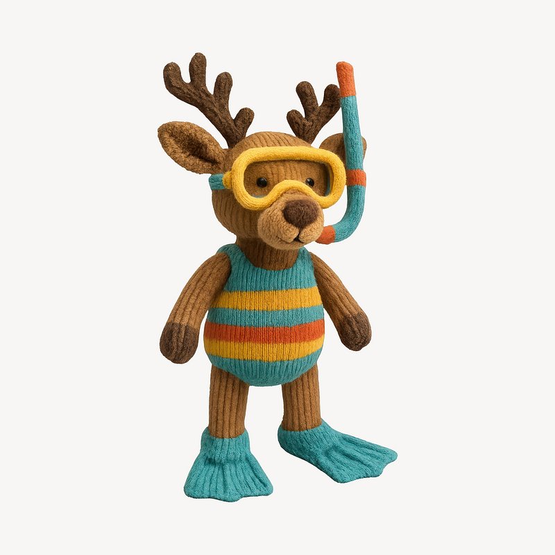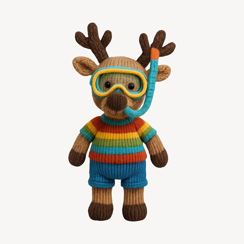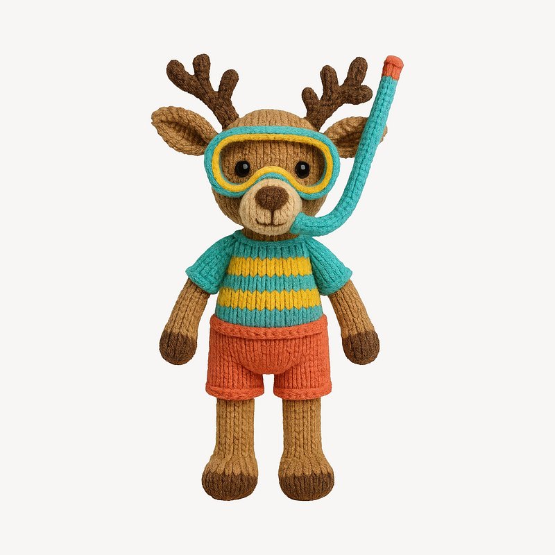 PNG Knitted deer toy snorkeling gear https://www.rawpixel.com/image/24521674/png-knitted-deer-toy-snorkeling-gearView license