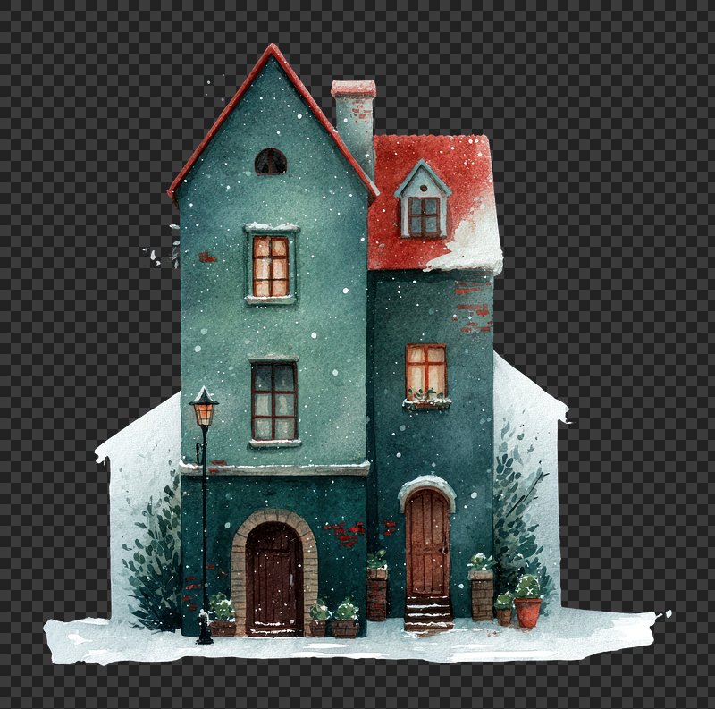 PNG Charming winter house illustration. https://www.rawpixel.com/image/24016541/png-charming-winter-house-illustrationView license