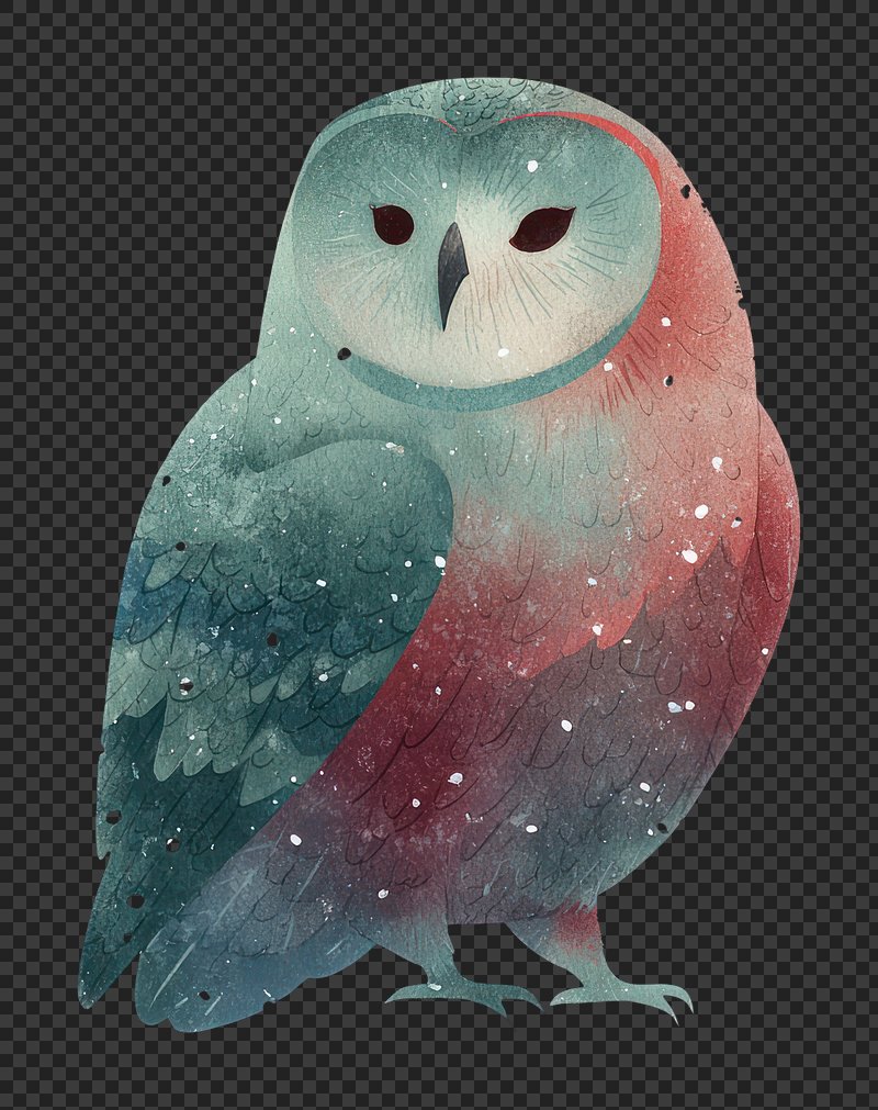 PNG Colorful owl illustration with snowflakes. https://www.rawpixel.com/image/24018159/png-colorful-owl-illustration-with-snowflakesView license