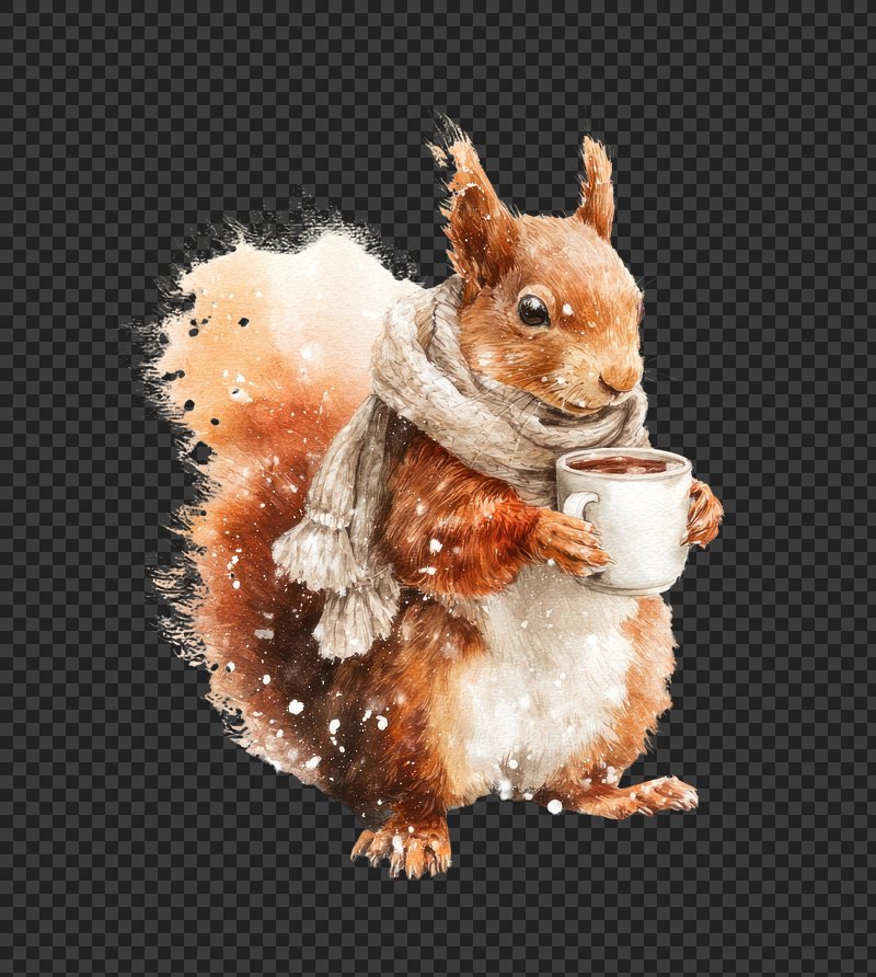 PNG Cozy squirrel with warm drink. https://www.rawpixel.com/image/24017860/png-cozy-squirrel-with-warm-drinkView license