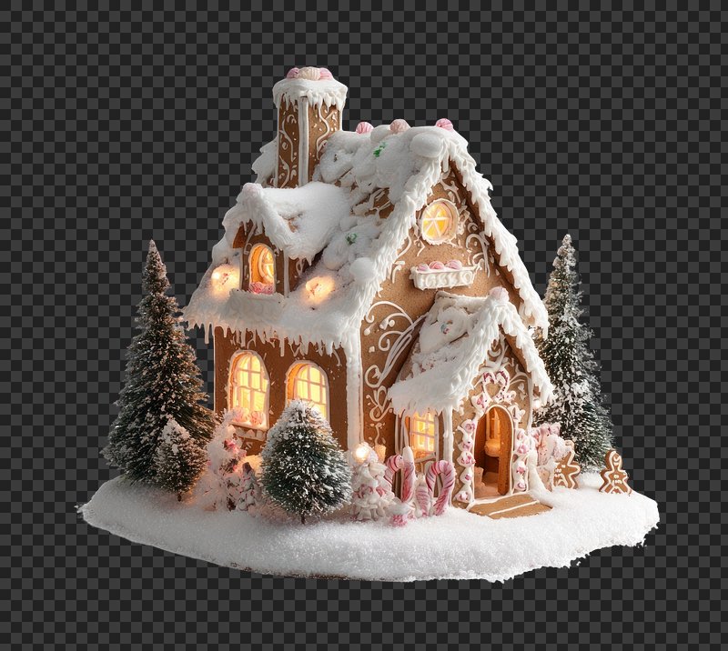 PNG Festive gingerbread house decoration https://www.rawpixel.com/image/24022671/png-festive-gingerbread-house-decorationView license
