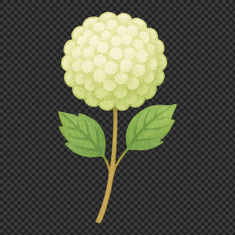 PNG Watercolor hydrangea with green leaves. https://www.rawpixel.com/image/18704227/png-watercolor-hydrangea-with-green-leavesView license
