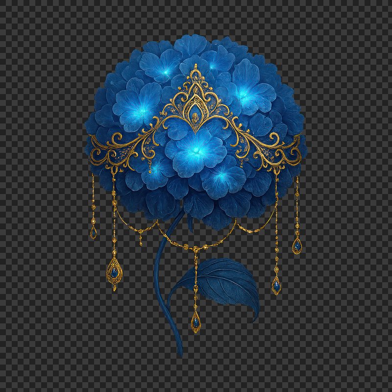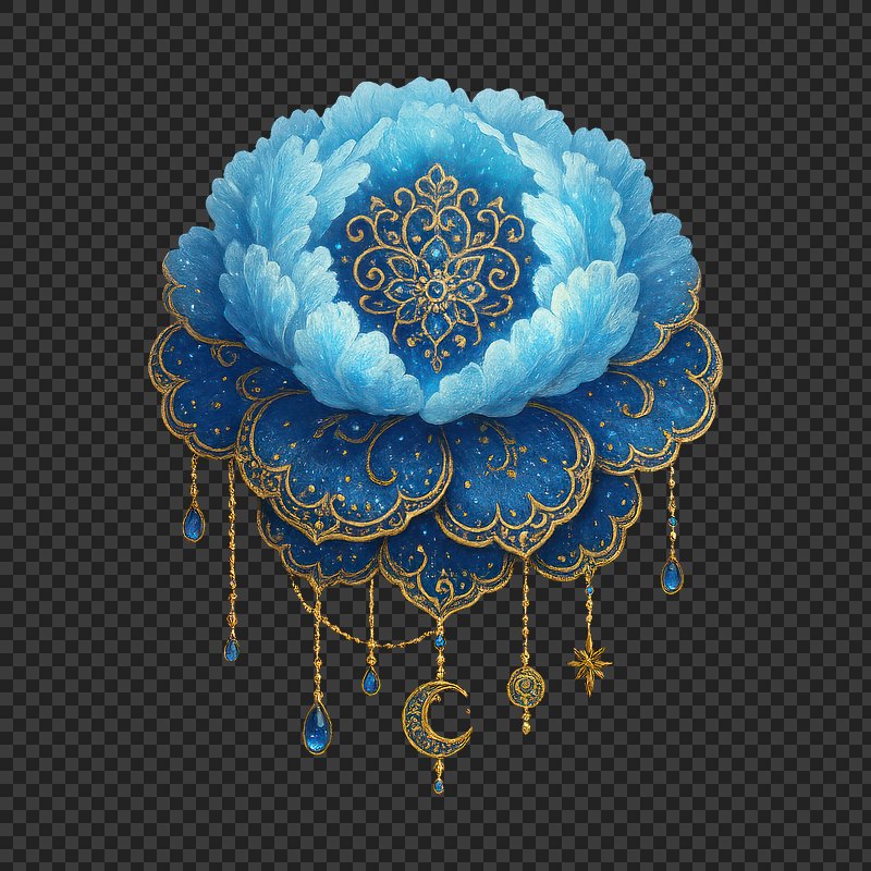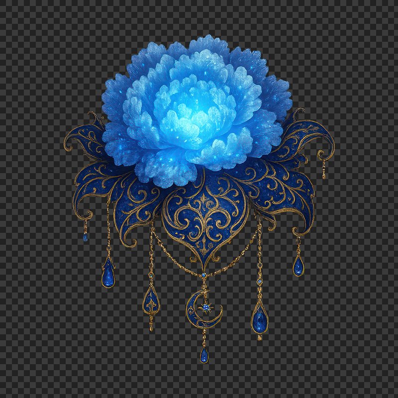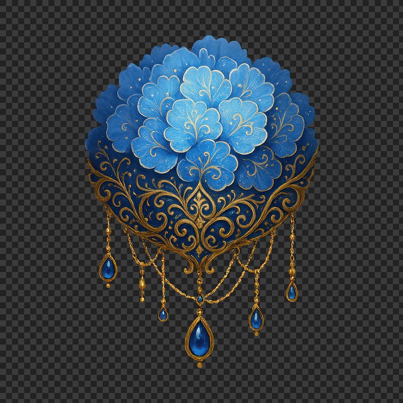 PNG Ornate blue flower with jewelry. https://www.rawpixel.com/image/19493412/png-ornate-blue-flower-with-jewelryView license