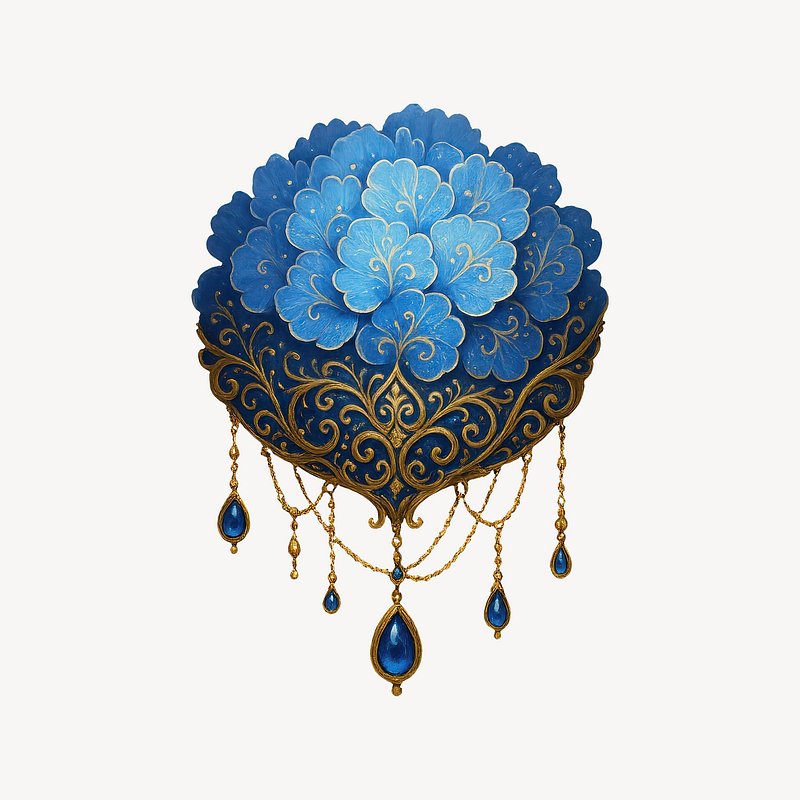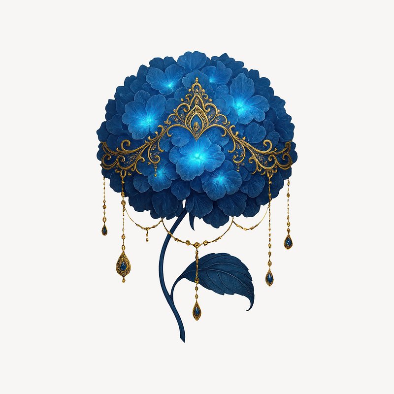 Ornate blue flower with jewelry. https://www.rawpixel.com/image/21433070/ornate-blue-flower-with-jewelryView license