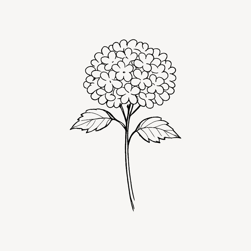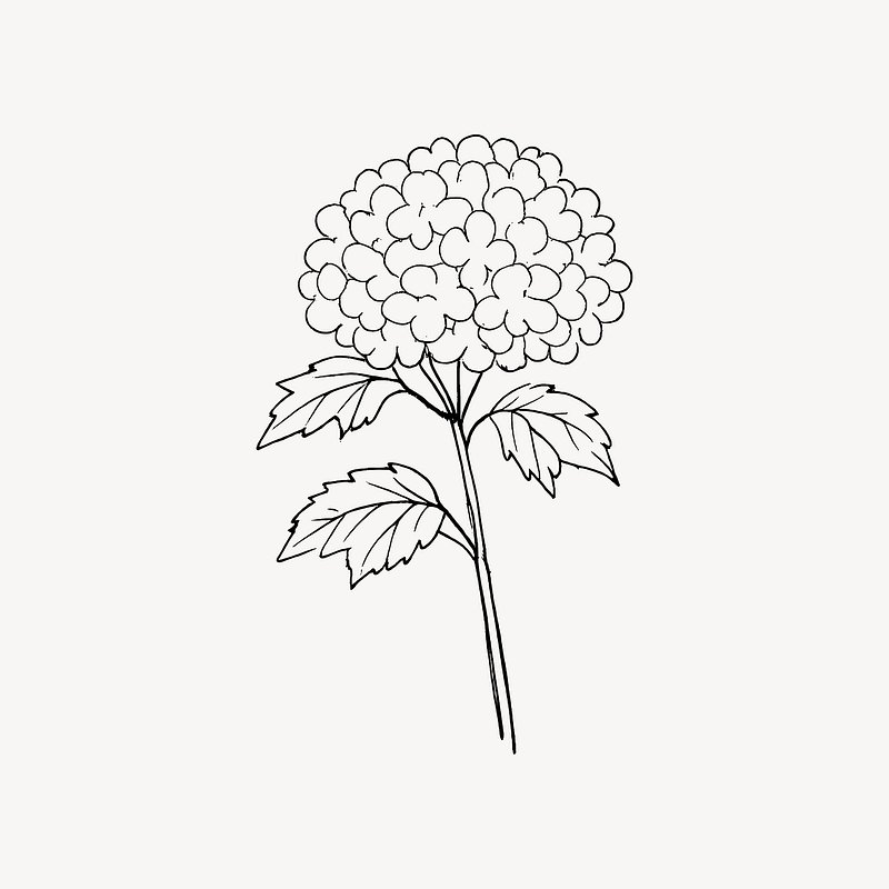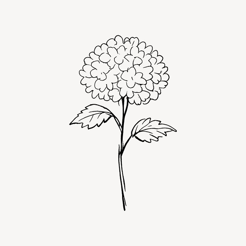 Minimalist hydrangea line art illustration. https://www.rawpixel.com/image/25791219/minimalist-hydrangea-line-art-illustrationView license