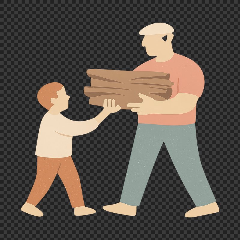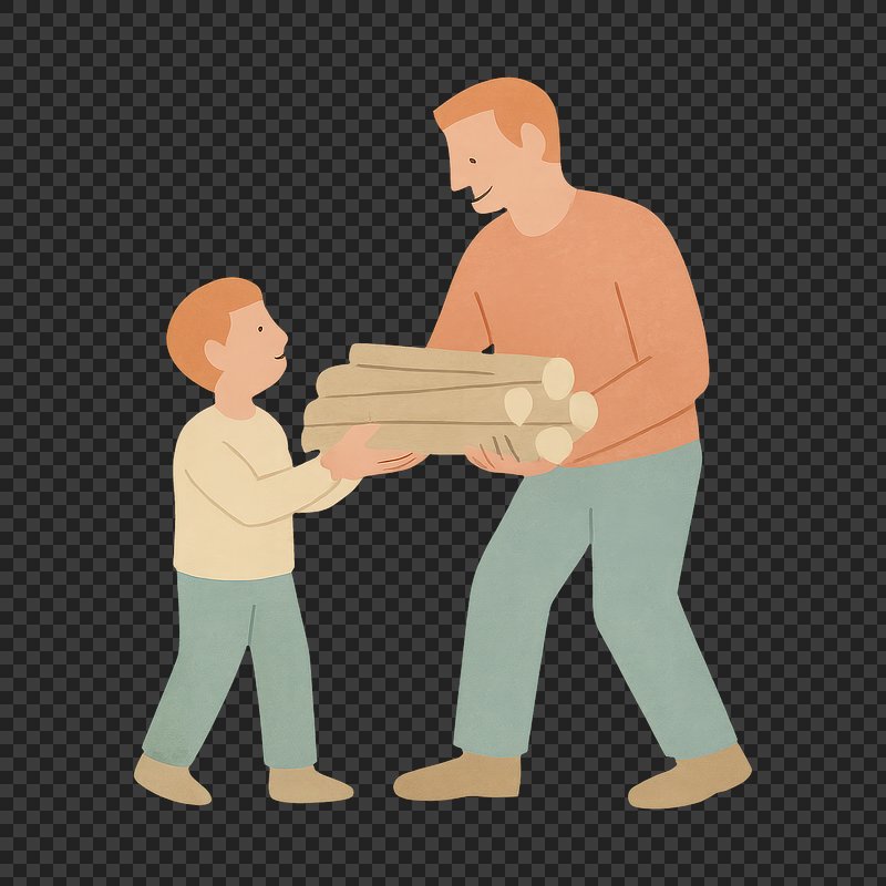 PNG Father and son carrying logs. https://www.rawpixel.com/image/24117084/png-father-and-son-carrying-logsView license