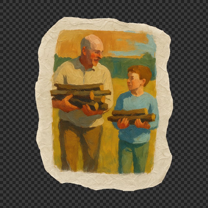 PNG Father and son carrying firewood. https://www.rawpixel.com/image/24166202/png-father-and-son-carrying-firewoodView license