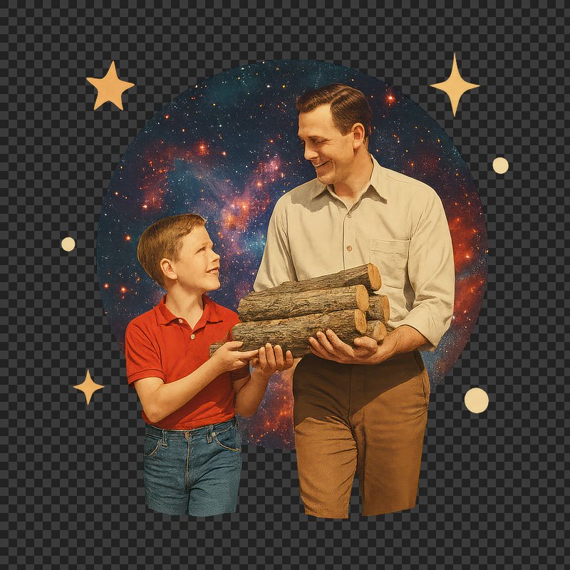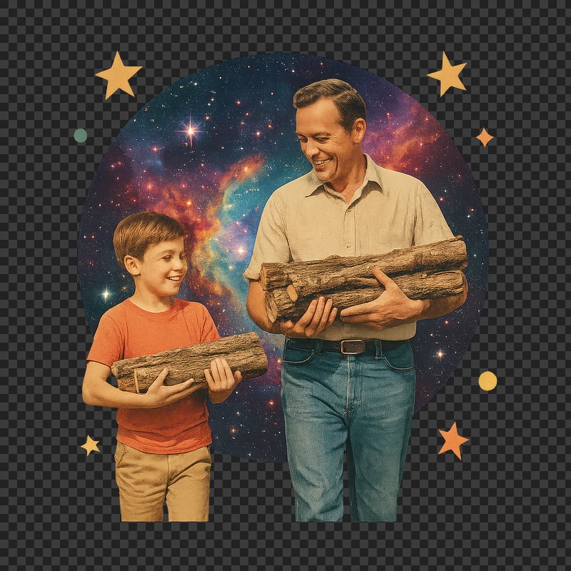 PNG Father son cosmic bonding logs https://www.rawpixel.com/image/24266537/png-father-son-cosmic-bonding-logsView license