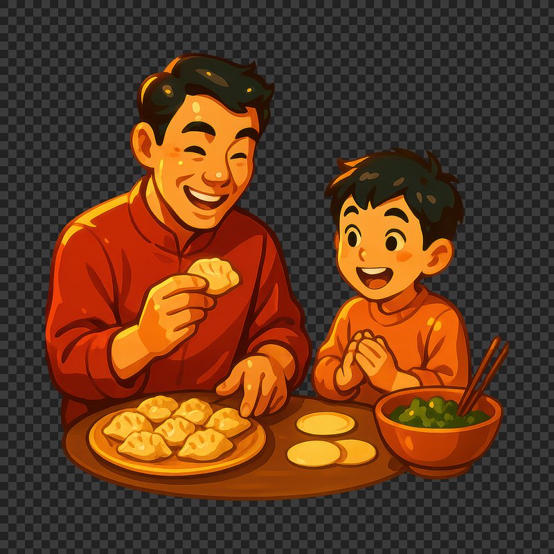 PNG Father and son enjoy dumplings. https://www.rawpixel.com/image/25004899/png-father-and-son-enjoy-dumplingsView license