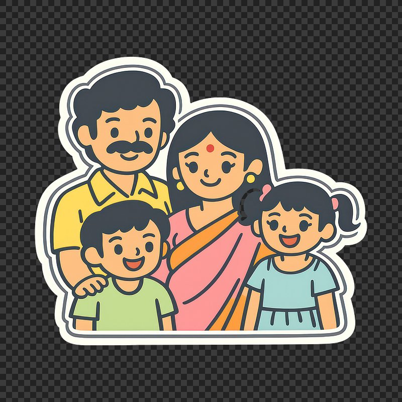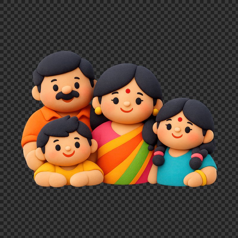 PNG Indian family cartoon adult toy. https://www.rawpixel.com/image/12431650/png-white-background-faceView license