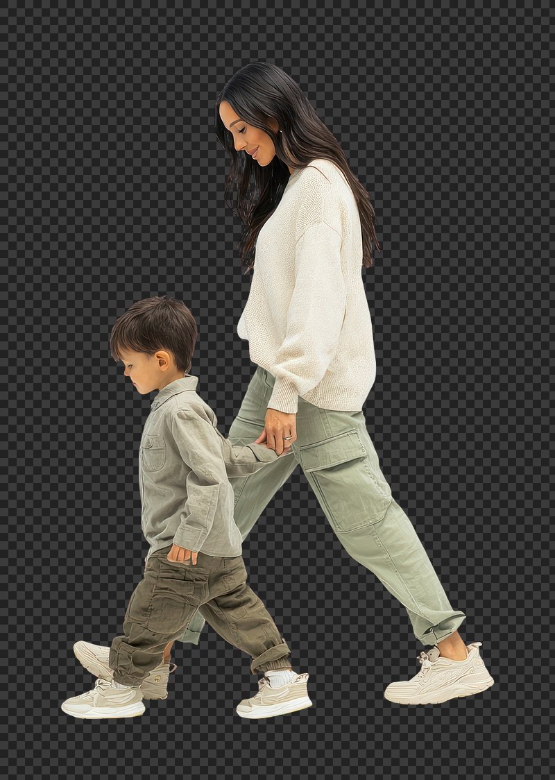 PNG Mother and child walking together. https://www.rawpixel.com/image/25977542/png-mother-and-child-walking-togetherView license