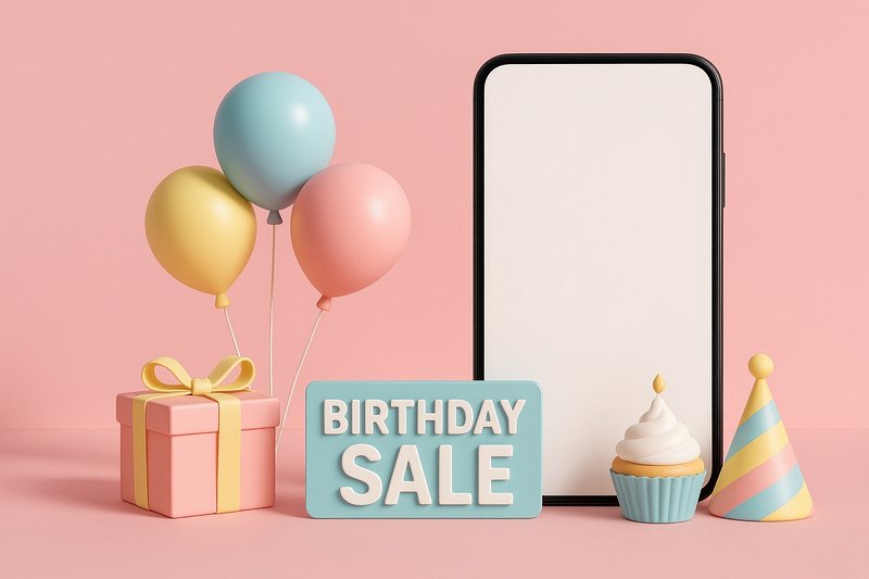 Birthday sale mobile advertisement https://www.rawpixel.com/image/24364536/birthday-sale-mobile-advertisementView license