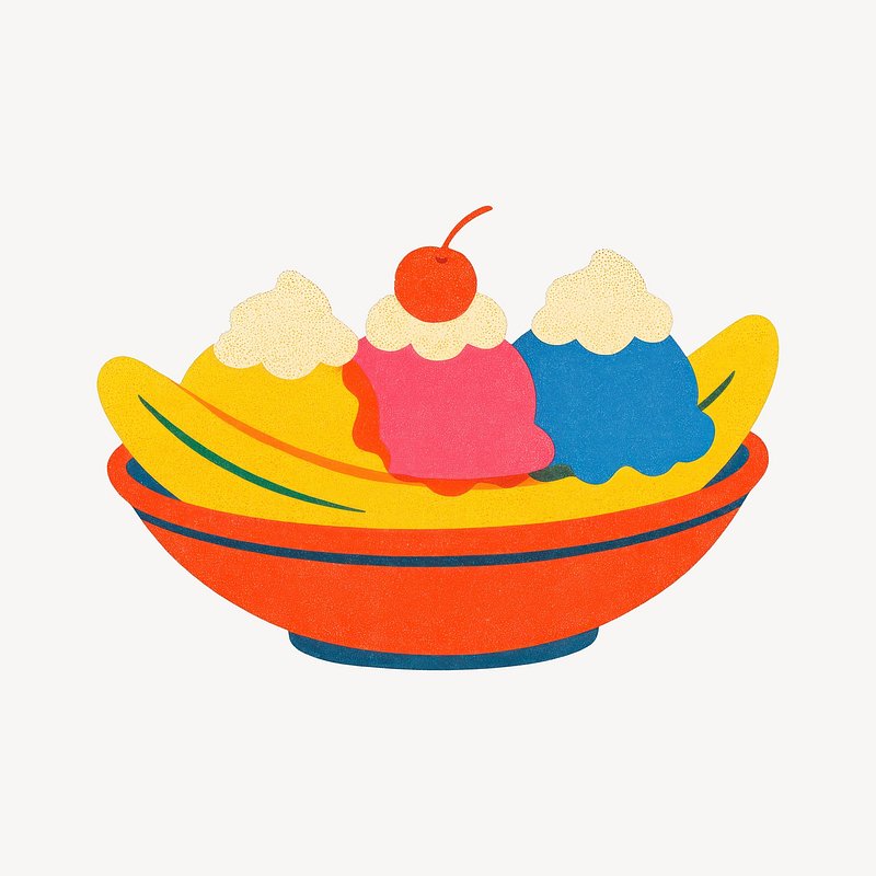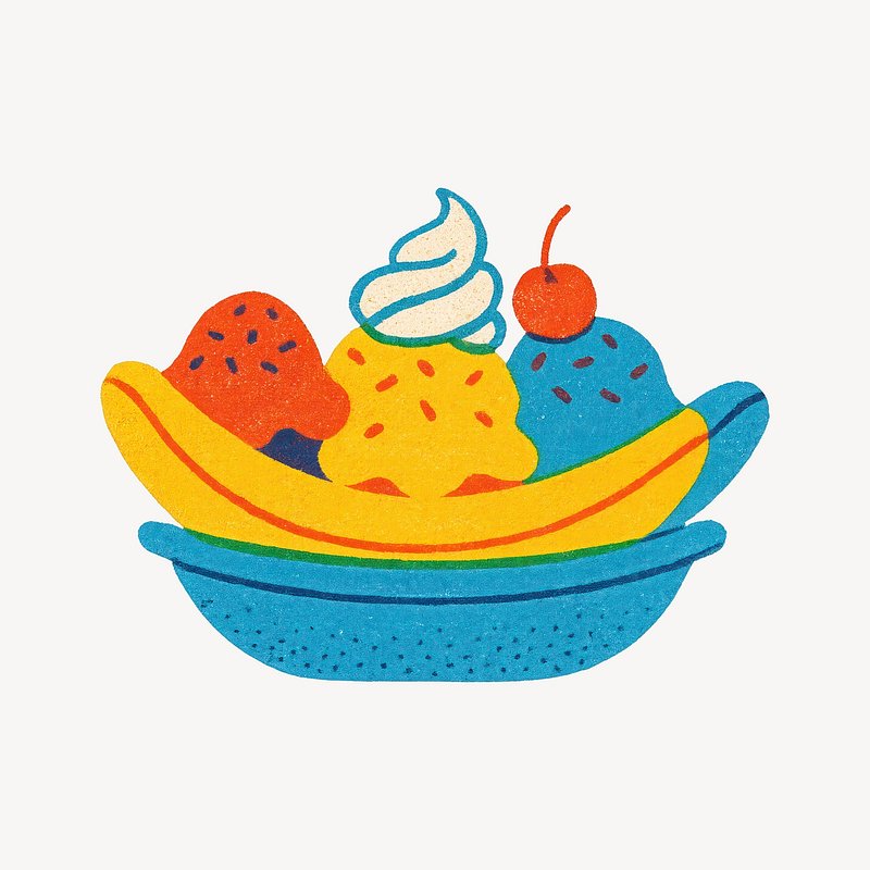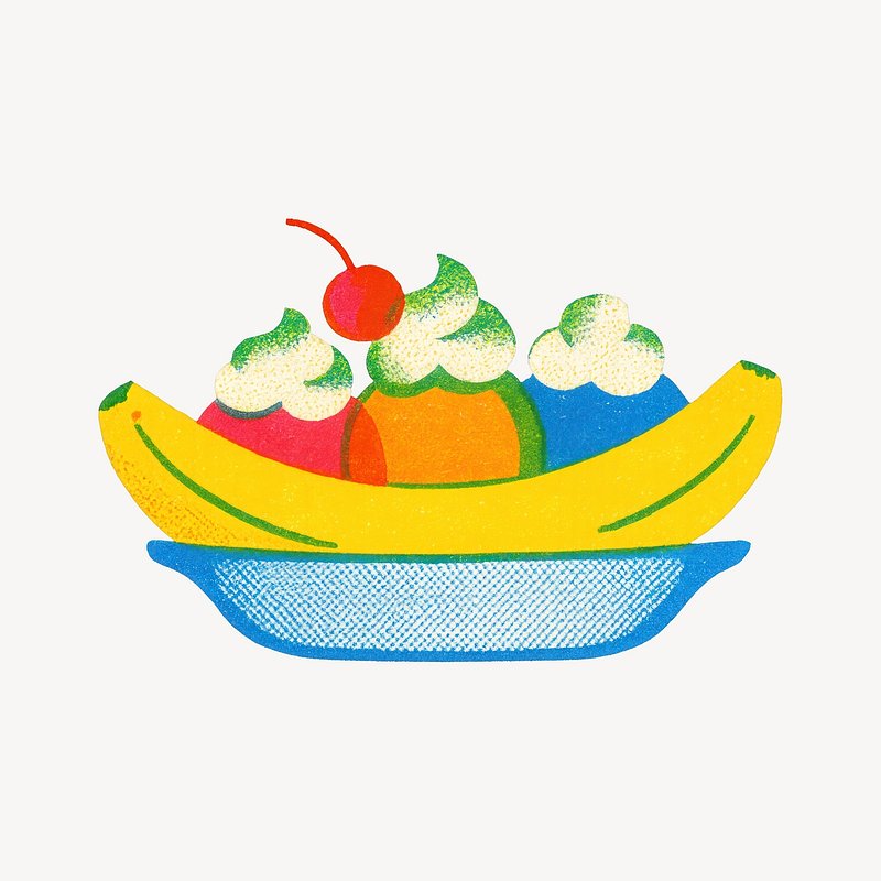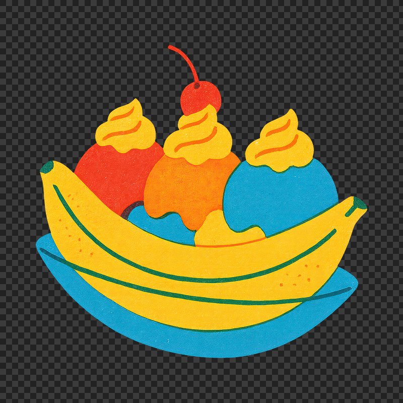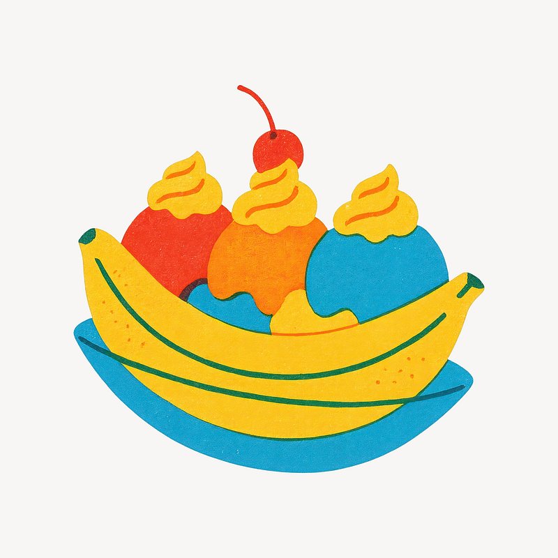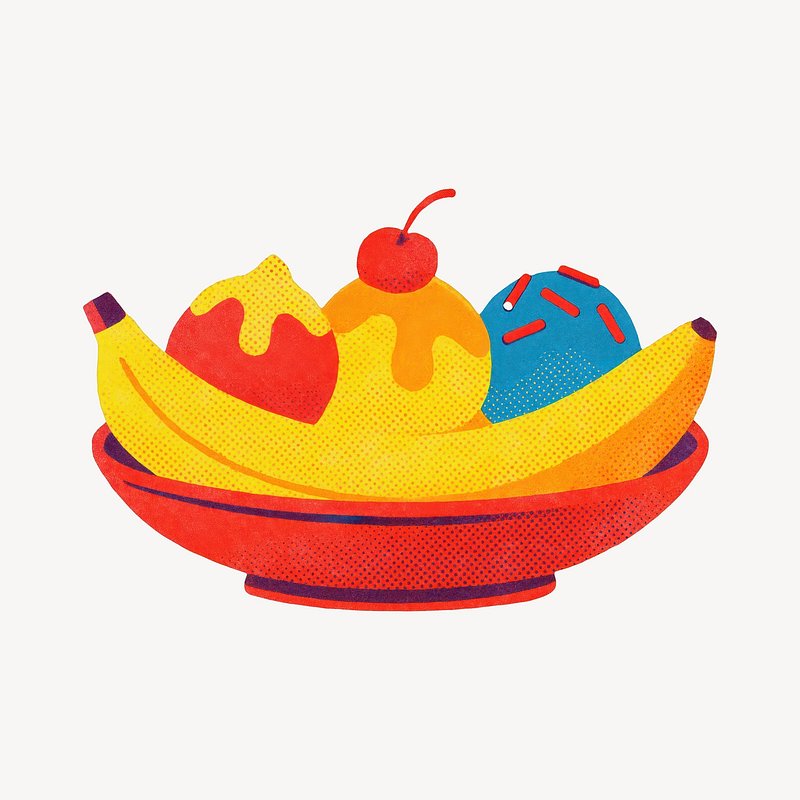 Colorful banana split illustration. https://www.rawpixel.com/image/22342471/colorful-banana-split-illustrationView license