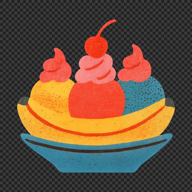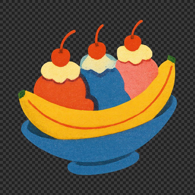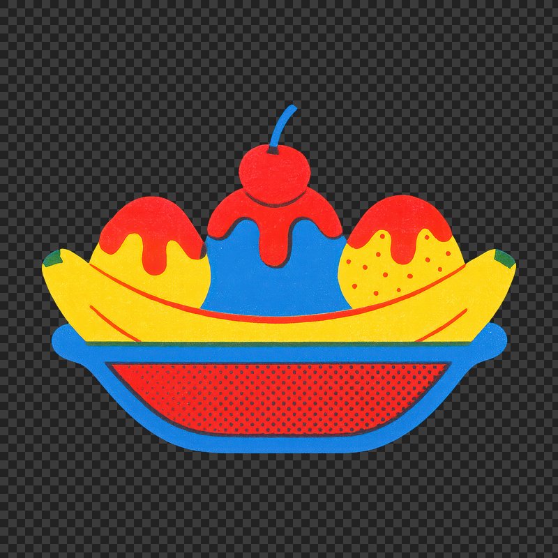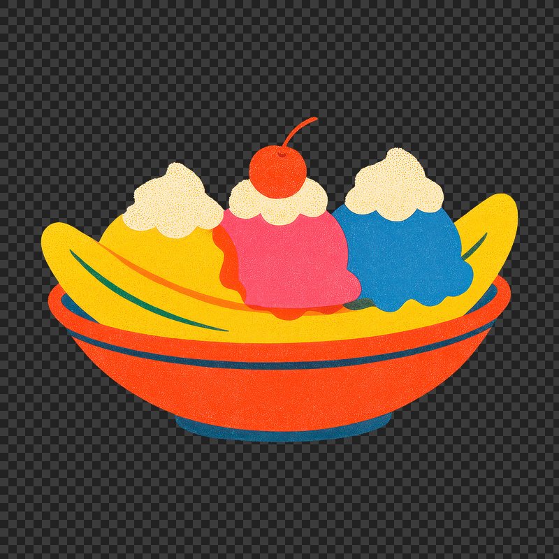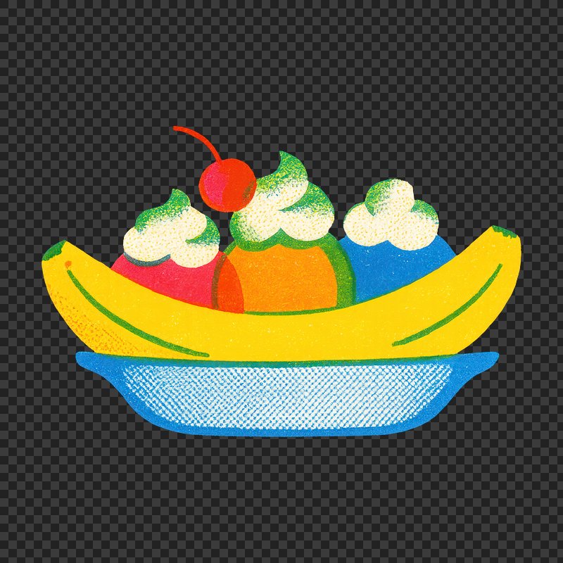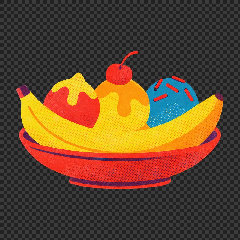 Colorful banana split illustration. https://www.rawpixel.com/image/22342471/colorful-banana-split-illustrationView license