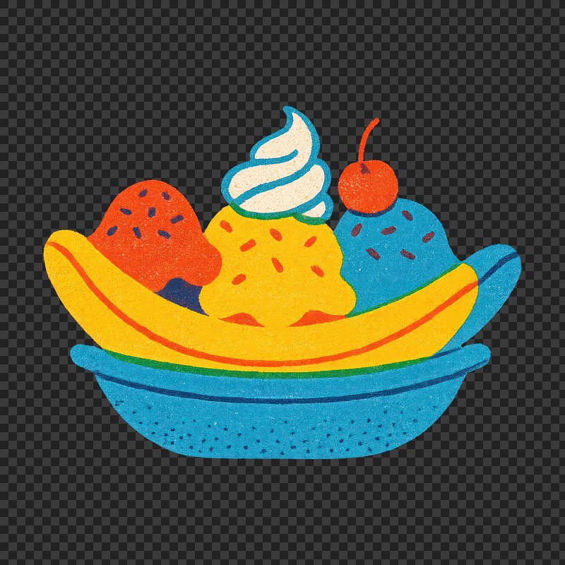 PNG Colorful banana split dessert illustration. https://www.rawpixel.com/image/21807915/png-colorful-banana-split-dessert-illustrationView license